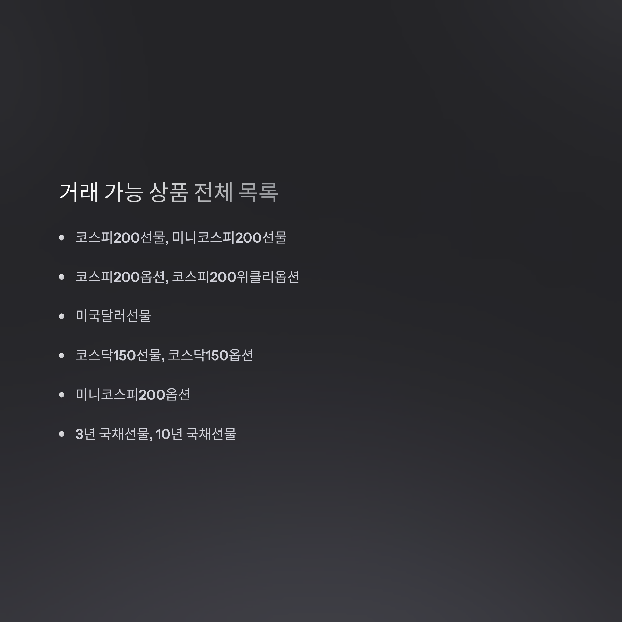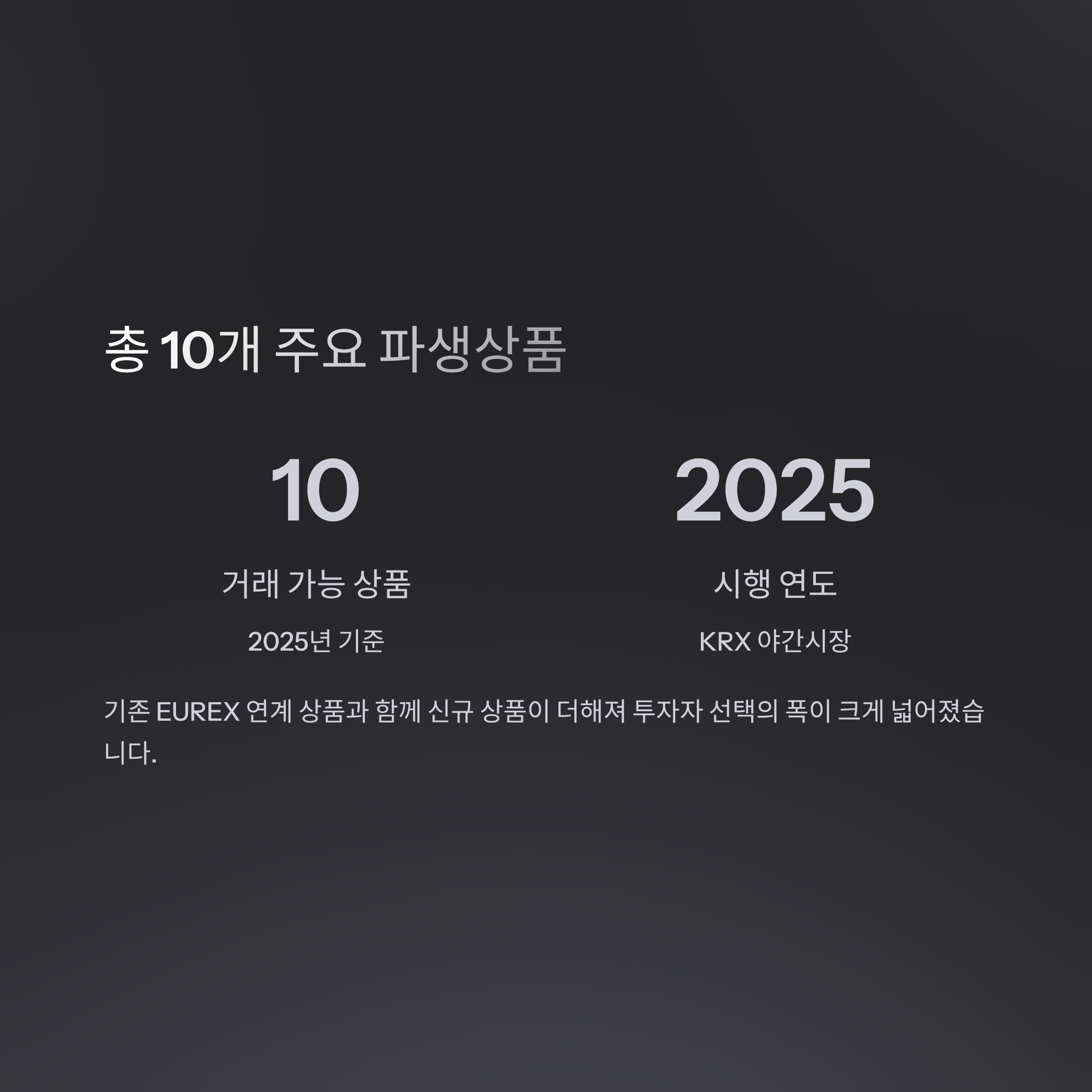 2025년 기준, KRX 야간선물 거래에서는 총 10개 주요 파생상품 거래가 가능합니다.