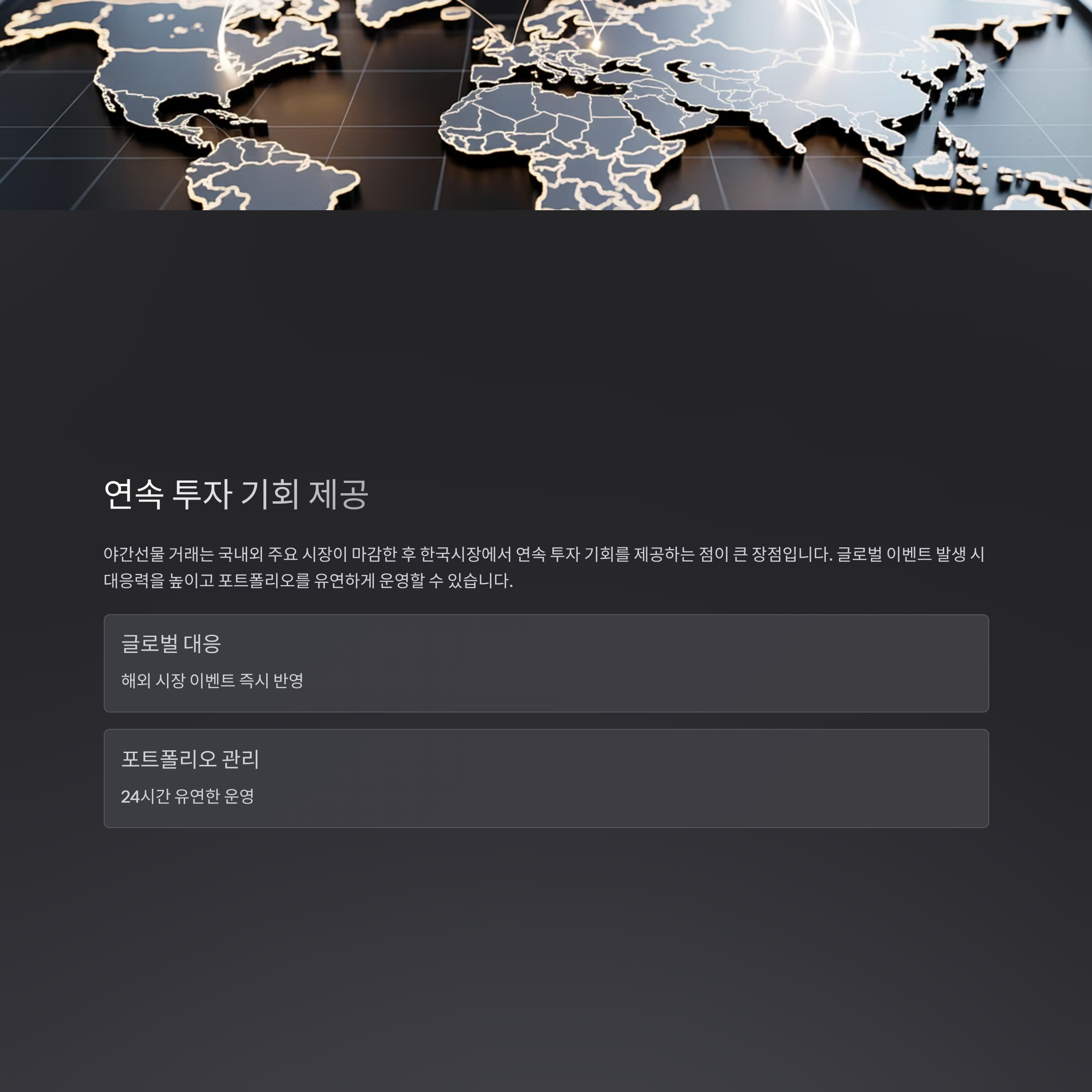 - 야간선물 거래는 국내외 주요 시장이 마감한 후 한국시장에서 연속 투자 기회를 제공하는 점이 큰 장점입니다.