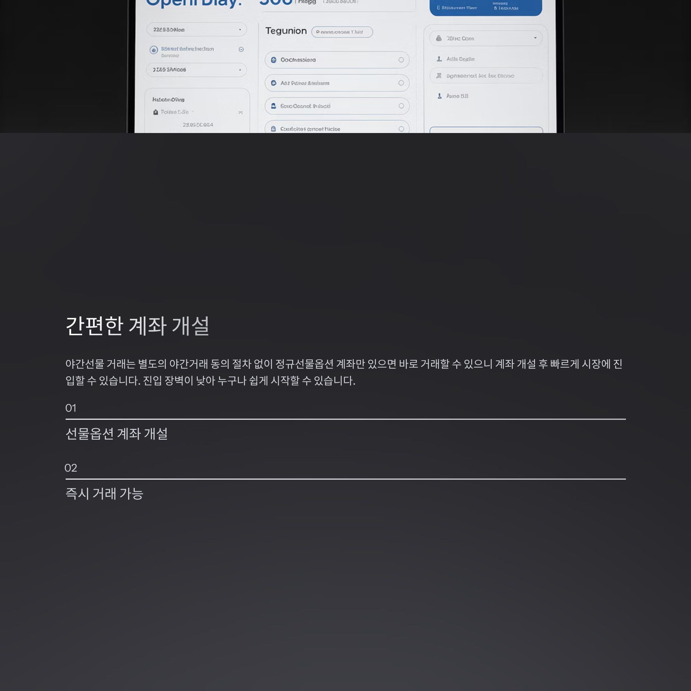- 야간선물 거래는 별도의 야간거래 동의 절차 없이 정규선물옵션 계좌만 있으면 바로 거래할 수 있으니 계좌 개설 후 빠르게 시장에 진입할 수 있습니다.