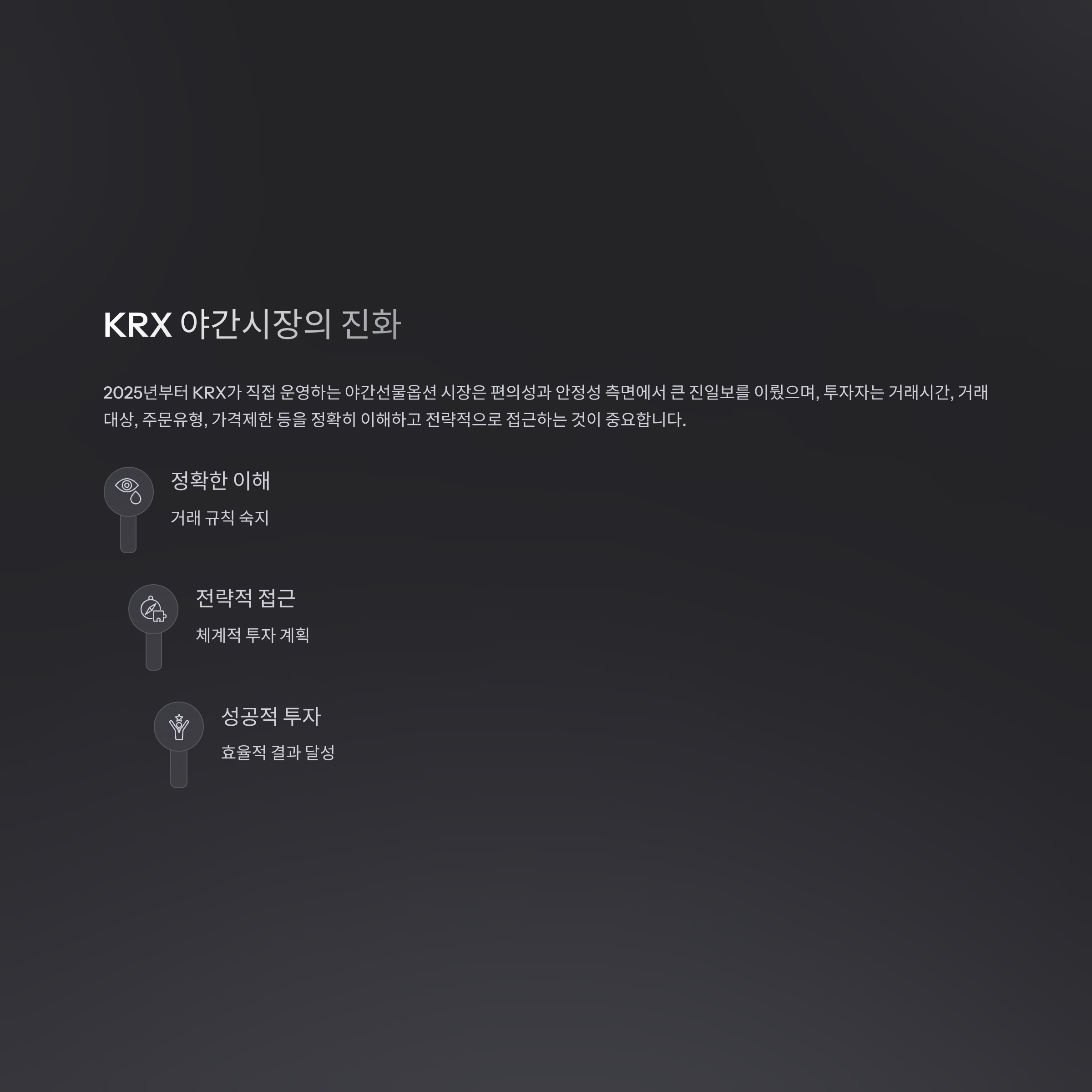 2025년부터 KRX가 직접 운영하는 야간선물옵션 시장은 편의성과 안정성 측면에서 큰 진일보를 이뤘으며, 투자자는 거래시간, 거래대상, 주문유형, 가격제한 등을 정확히 이해하고 전략적으로 접근하는 것이 중요합니다.