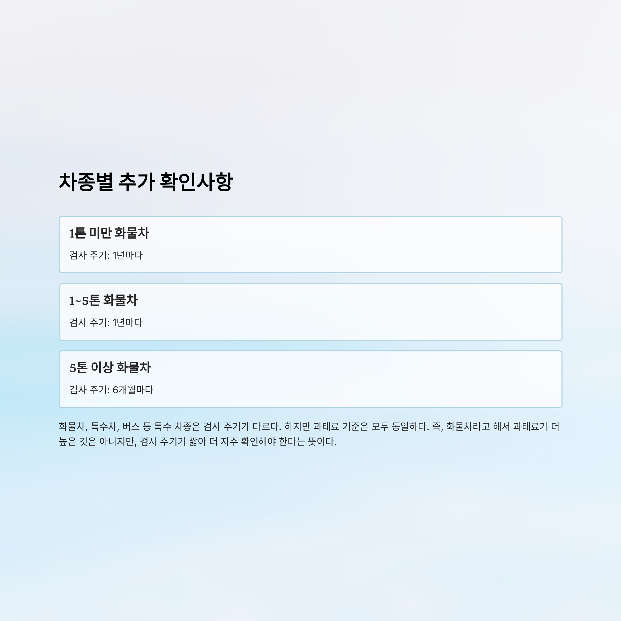즉, 화물차라고 해서 과태료가 더 높은 것은 아니지만, 검사 주기가 짧아 더 자주 확인해야 한다는 뜻이다.