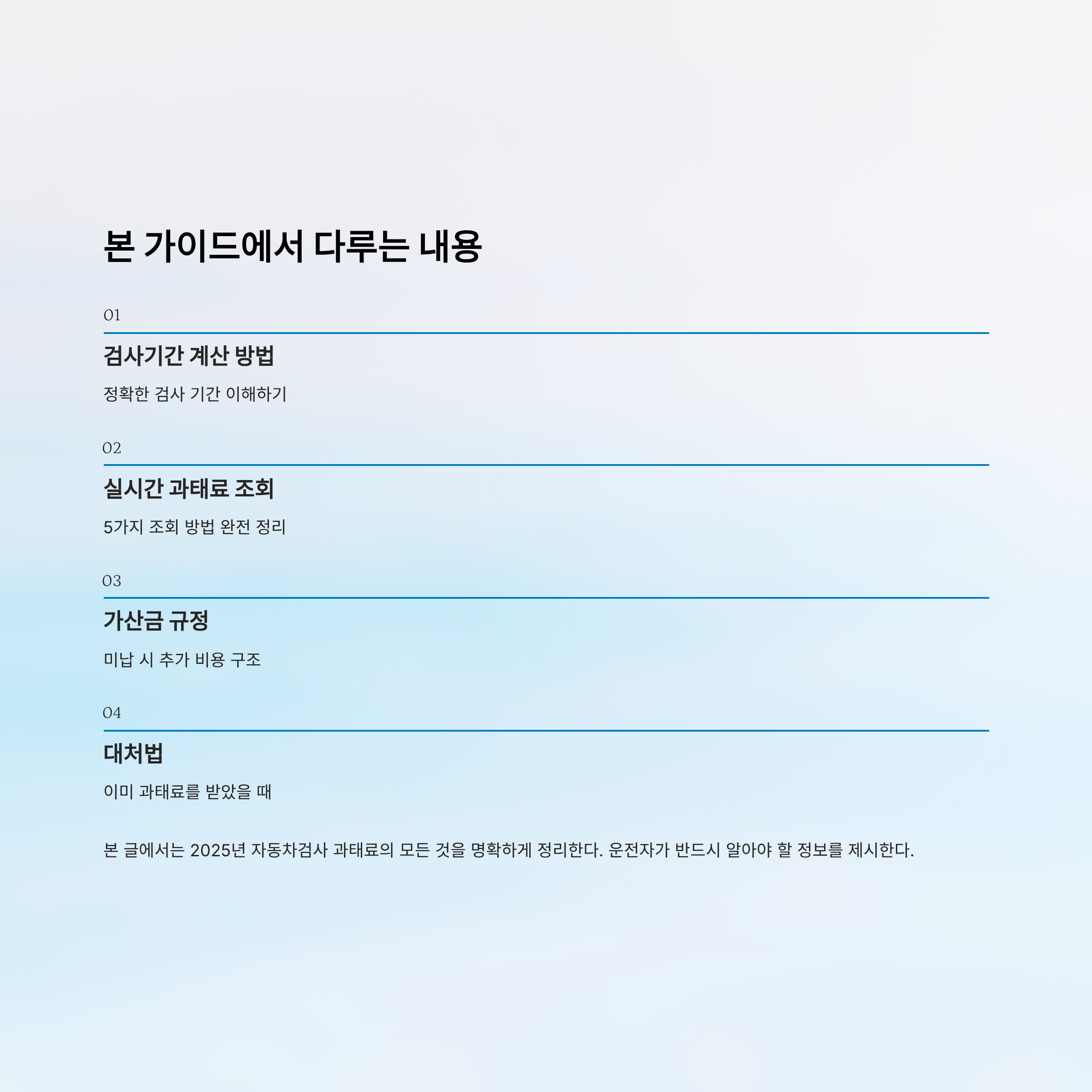 본 글에서는 2025년 자동차검사 과태료의 모든 것을 명확하게 정리한다.
