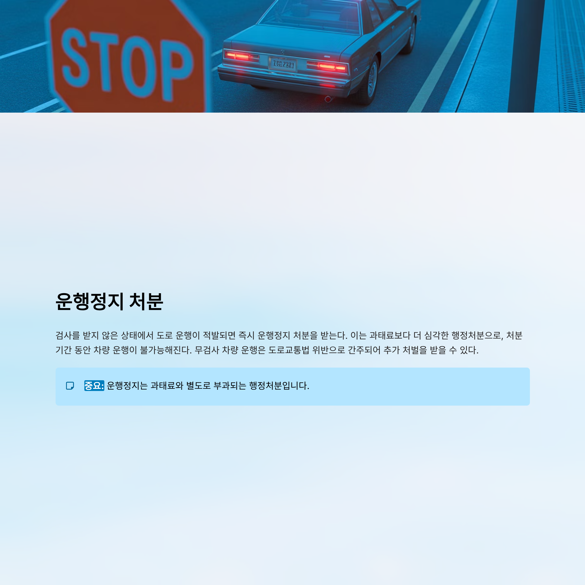 이는 과태료보다 더 심각한 행정처분으로, 처분 기간 동안 차량 운행이 불가능해진다.