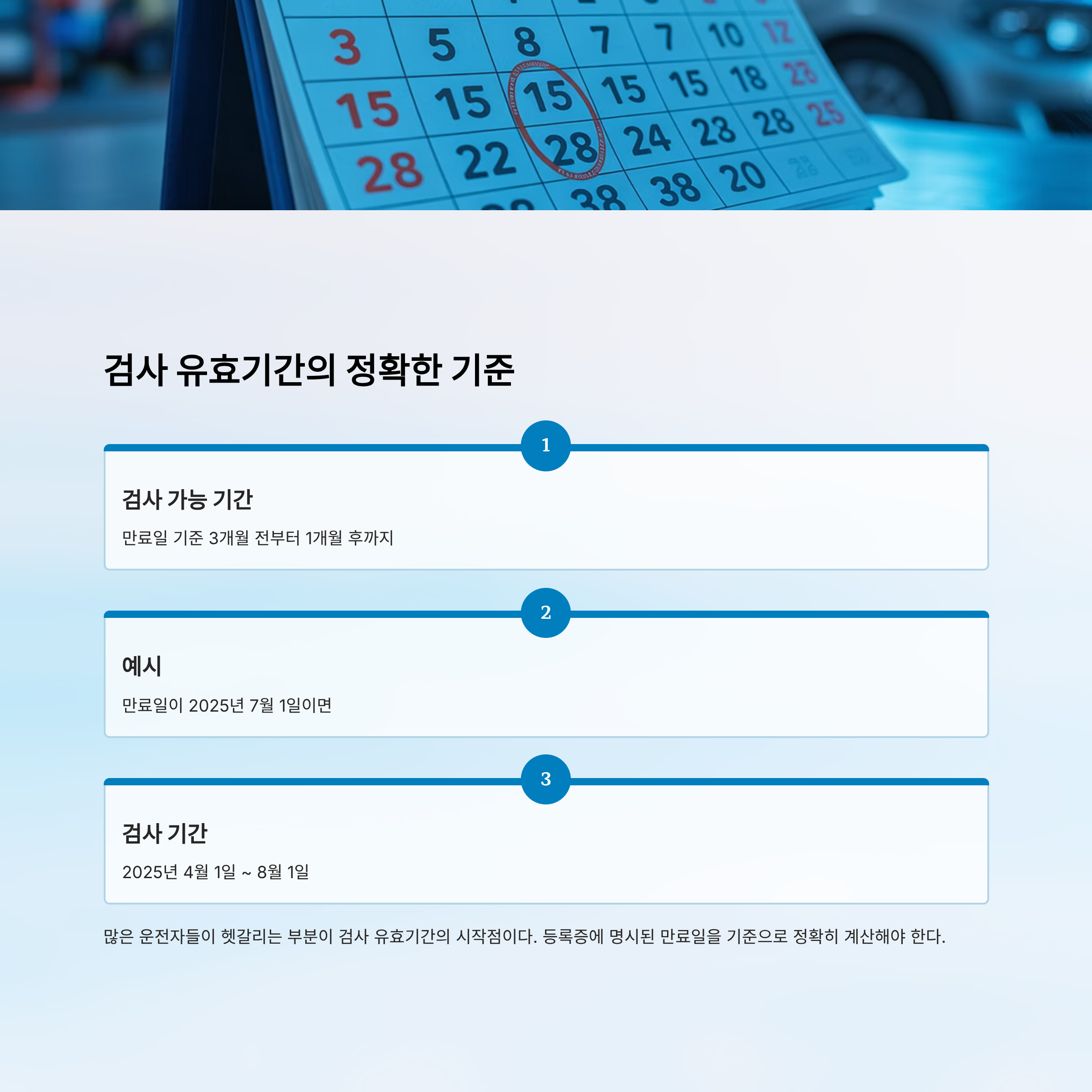 많은 운전자들이 헷갈리는 부분이 검사 유효기간의 시작점이다. 정확한 기준은 다음과 같다.