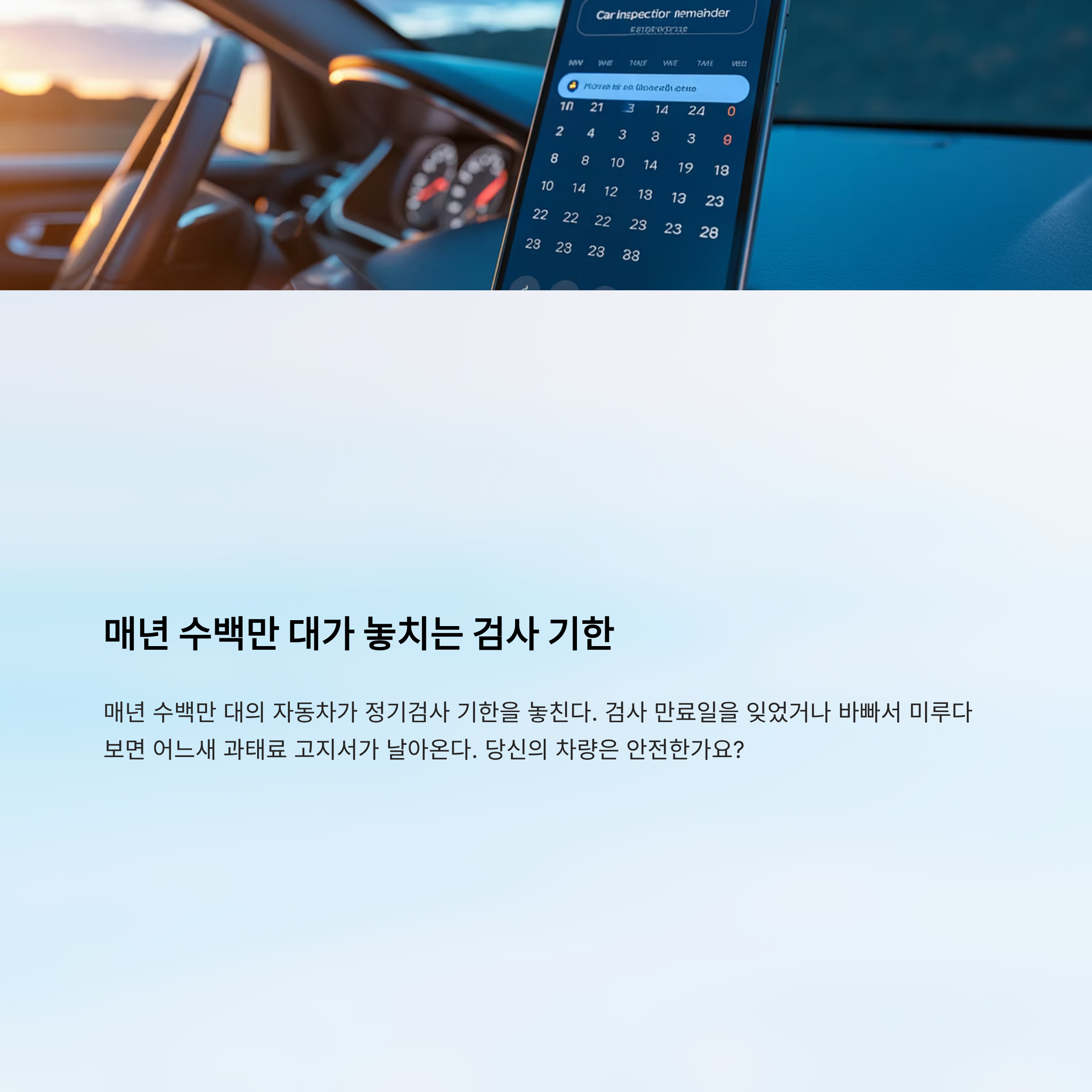 1. 자동차 등록증에 명시된 검사 만료일을 휴대폰 달력에 알람 설정