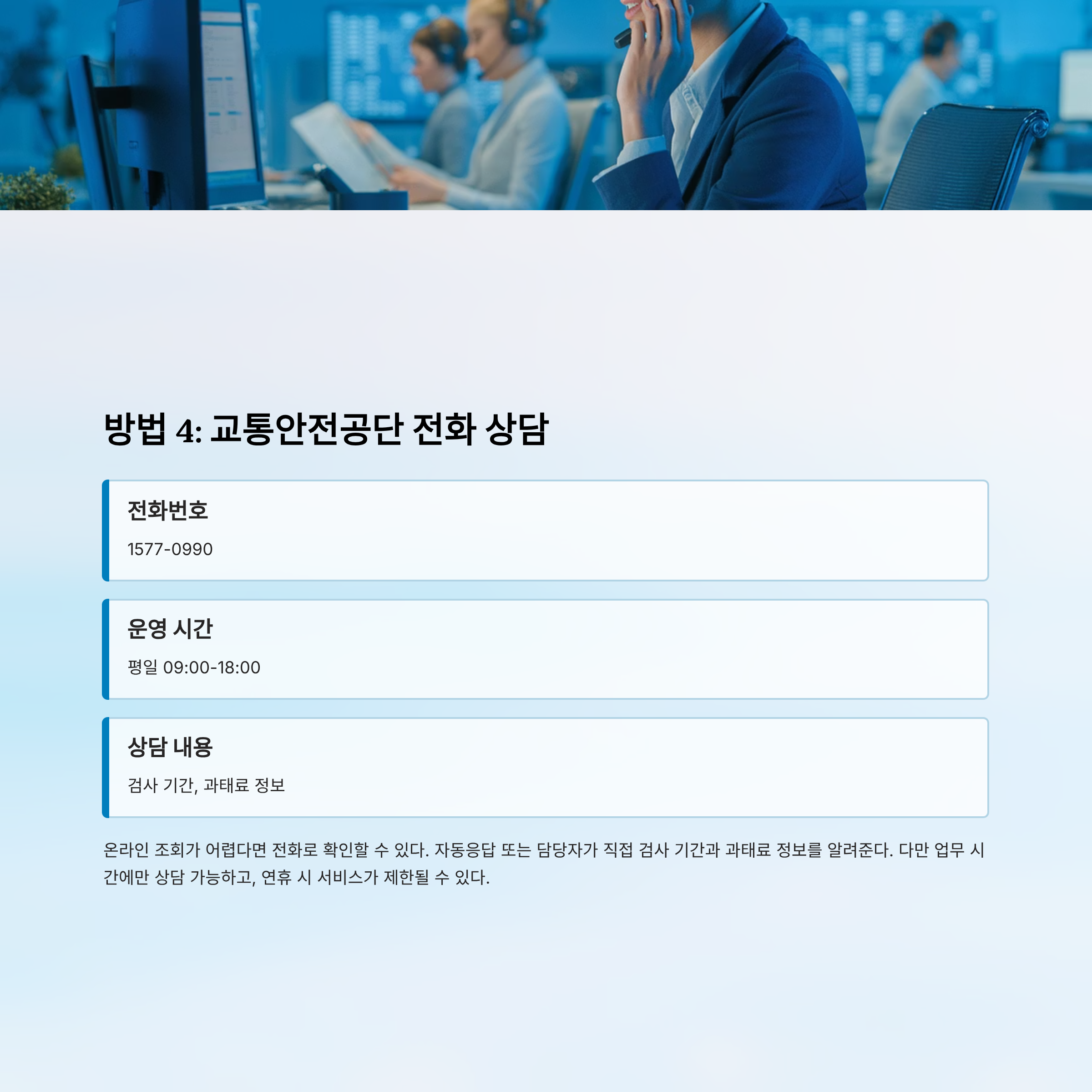 **방법 4: 교통안전공단 전화 상담 (1577-0990)**