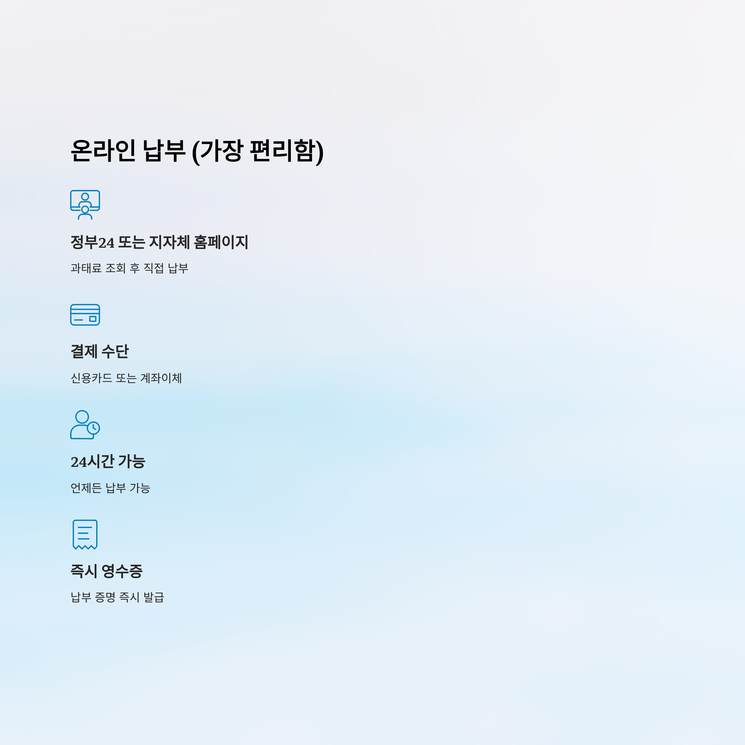 정부24 또는 각 지자체 홈페이지에서 과태료를 조회한 후 직접 온라인 납부할 수 있다.