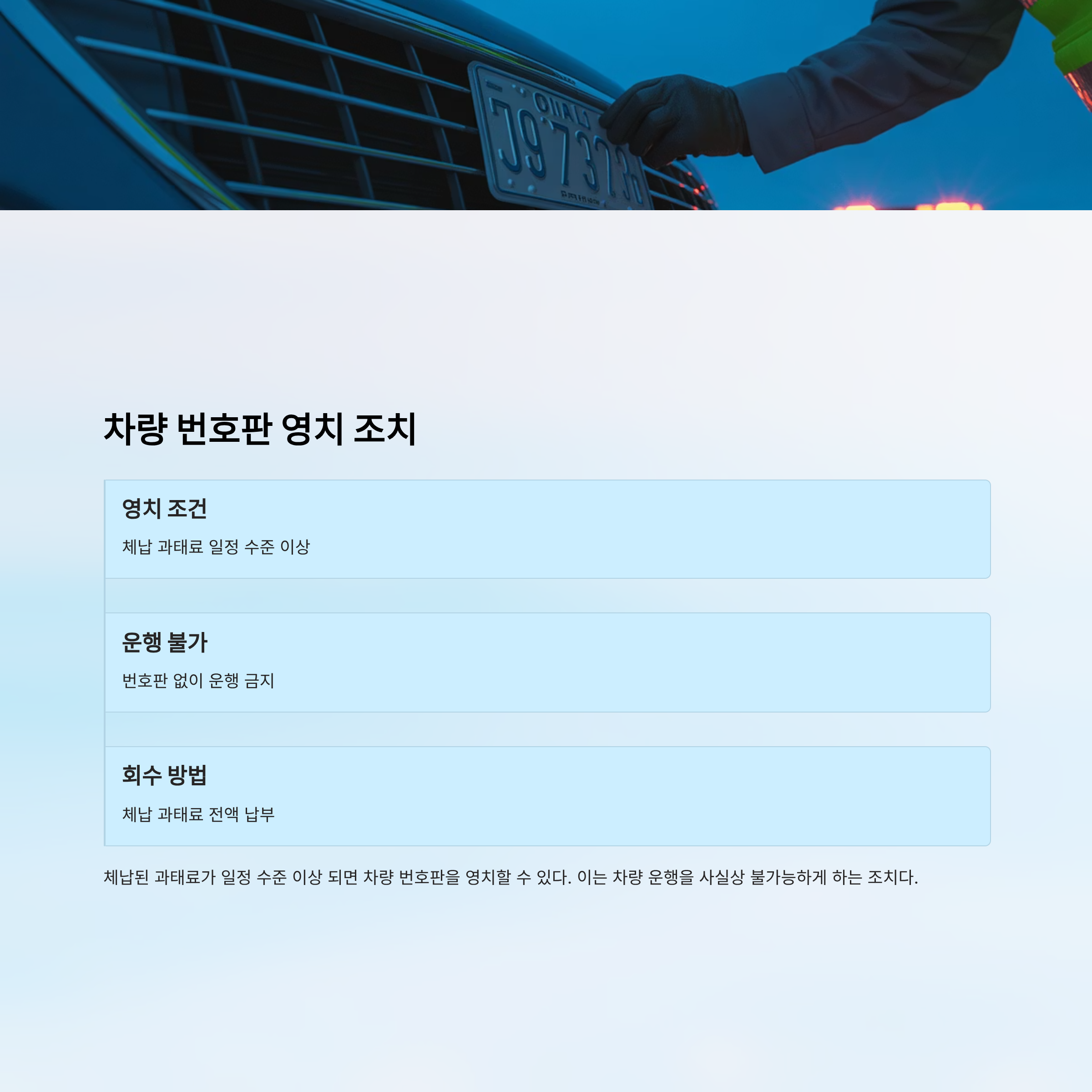 **차량 번호판 영치 조치**