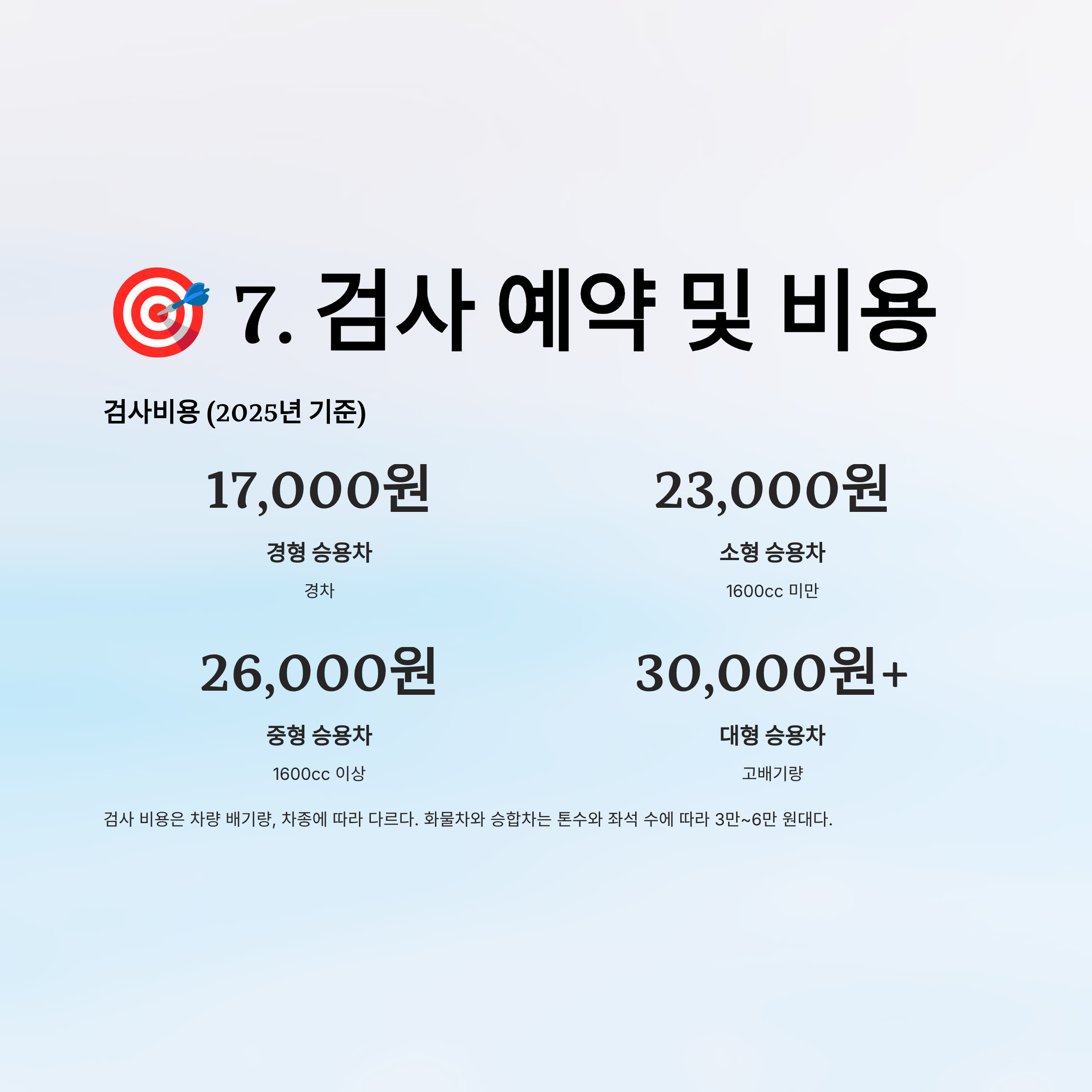 🎯 7. 자동차검사 예약 및 검사비용 정보