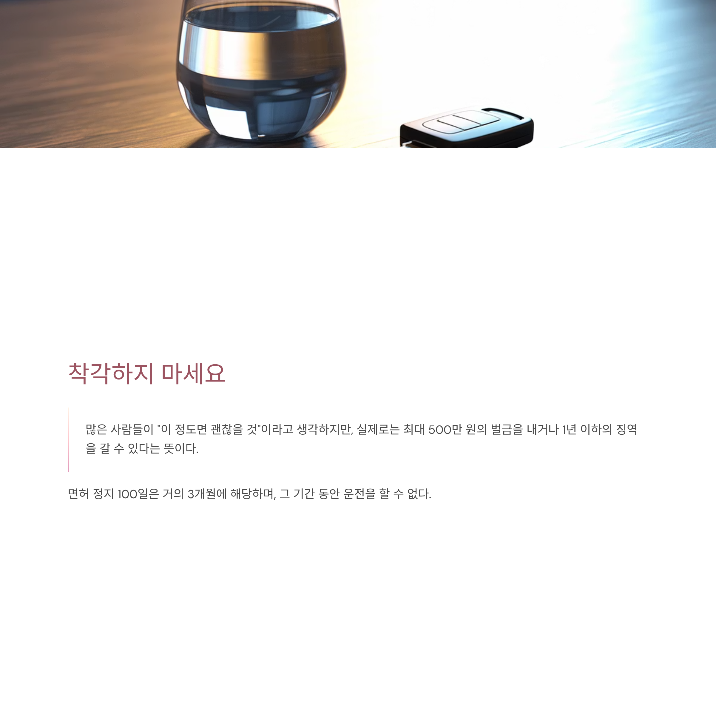 놀라운 사실은 많은 운전자들이 "술 한잔 정도는 괜찮을 것"이라는 착각으로 음주운전을 하다가 인생을 망친다는 것이다.