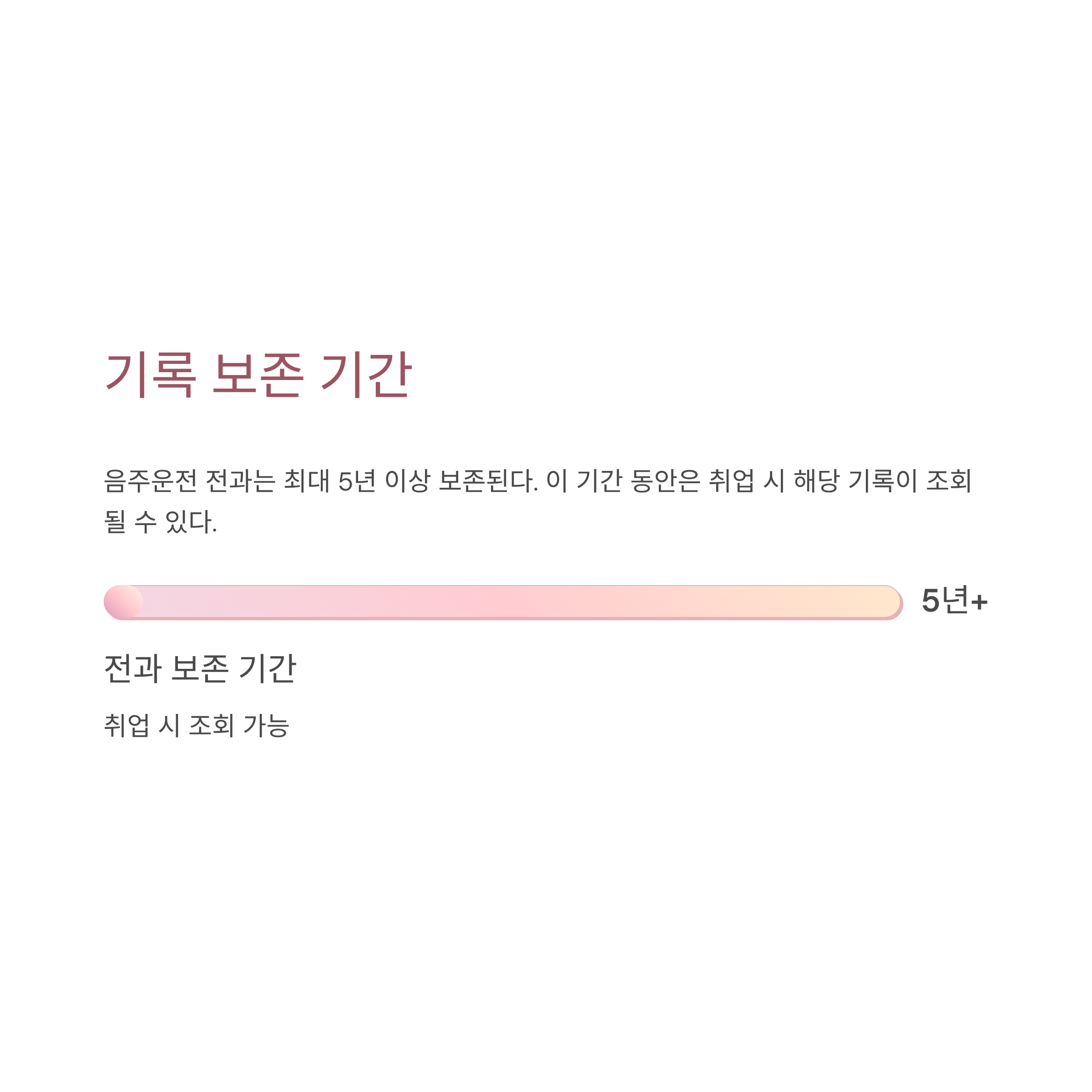 음주운전 전과는 최대 5년 이상 보존된다. 이 기간 동안은 취업 시 해당 기록이 조회될 수 있다.