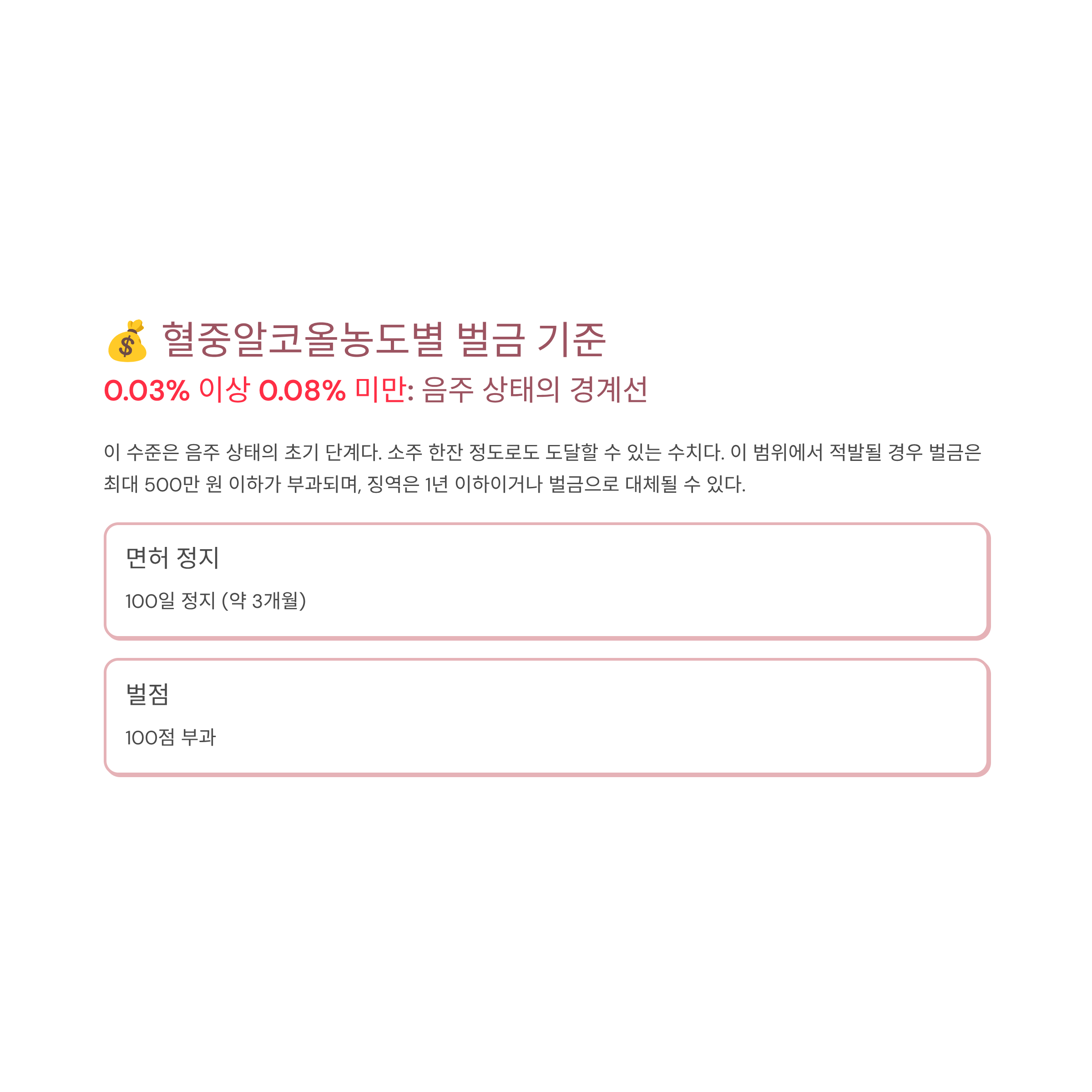 **0.03% 이상 0.08% 미만: 음주 상태의 경계선**