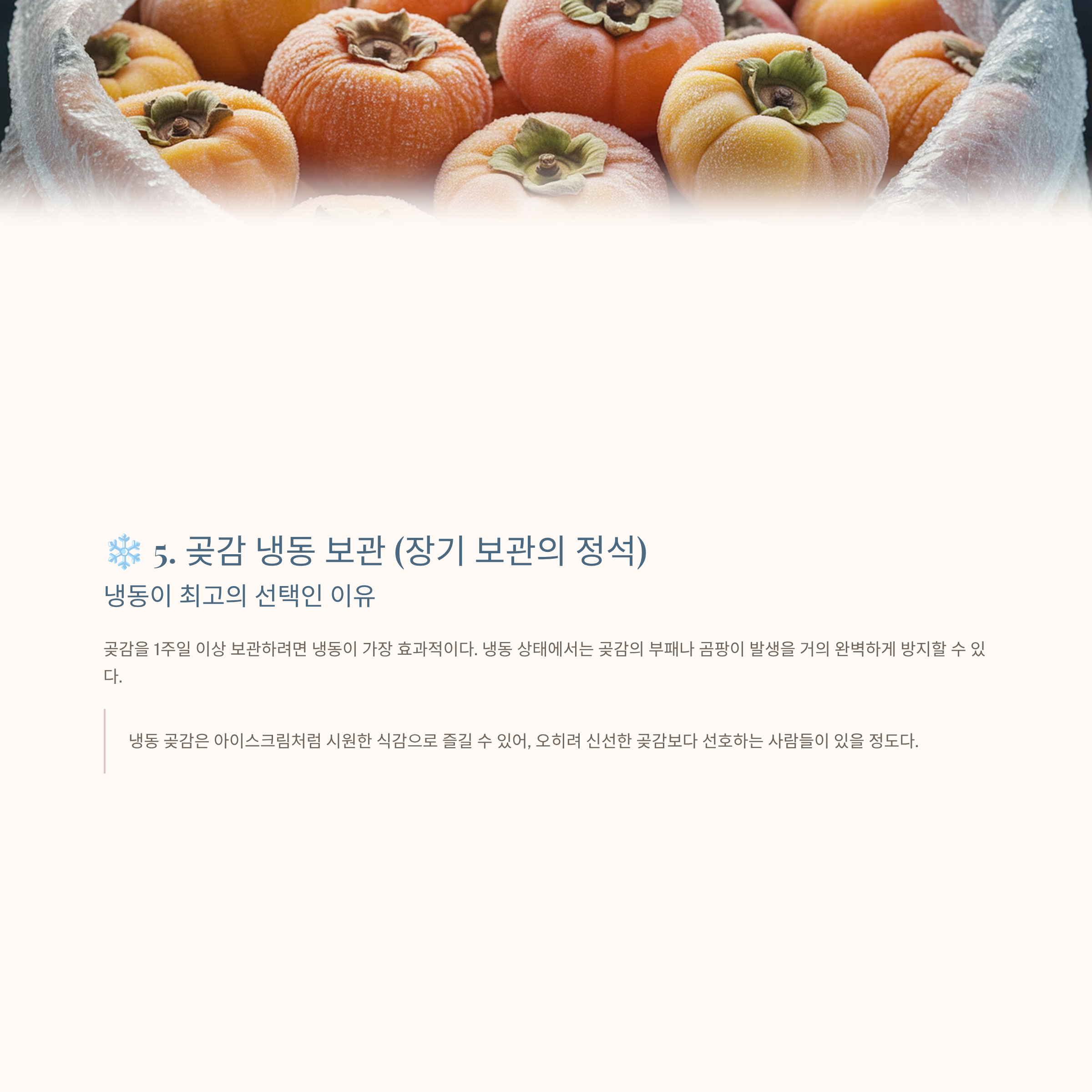 이 글의 방법을 따라 한 번 제대로 보관해 보자. 곶감이 주는 진정한 맛의 가치를 완전히 다르게 느낄 것이다.