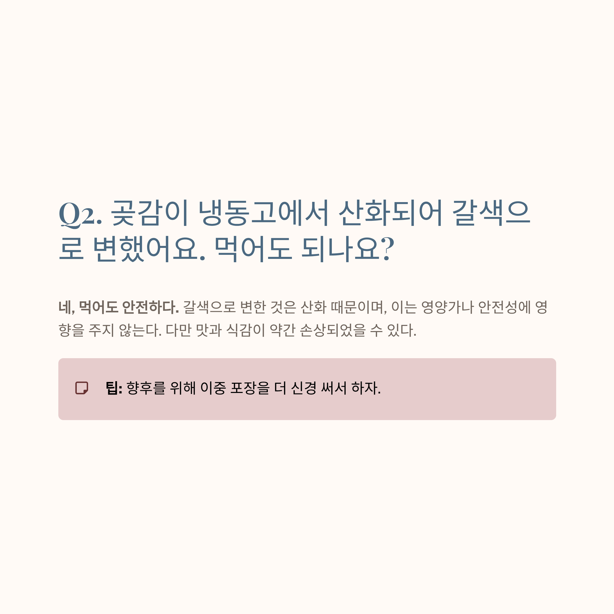 **Q2. 곶감이 냉동고에서 산화되어 갈색으로 변했어요. 먹어도 되나요?**
