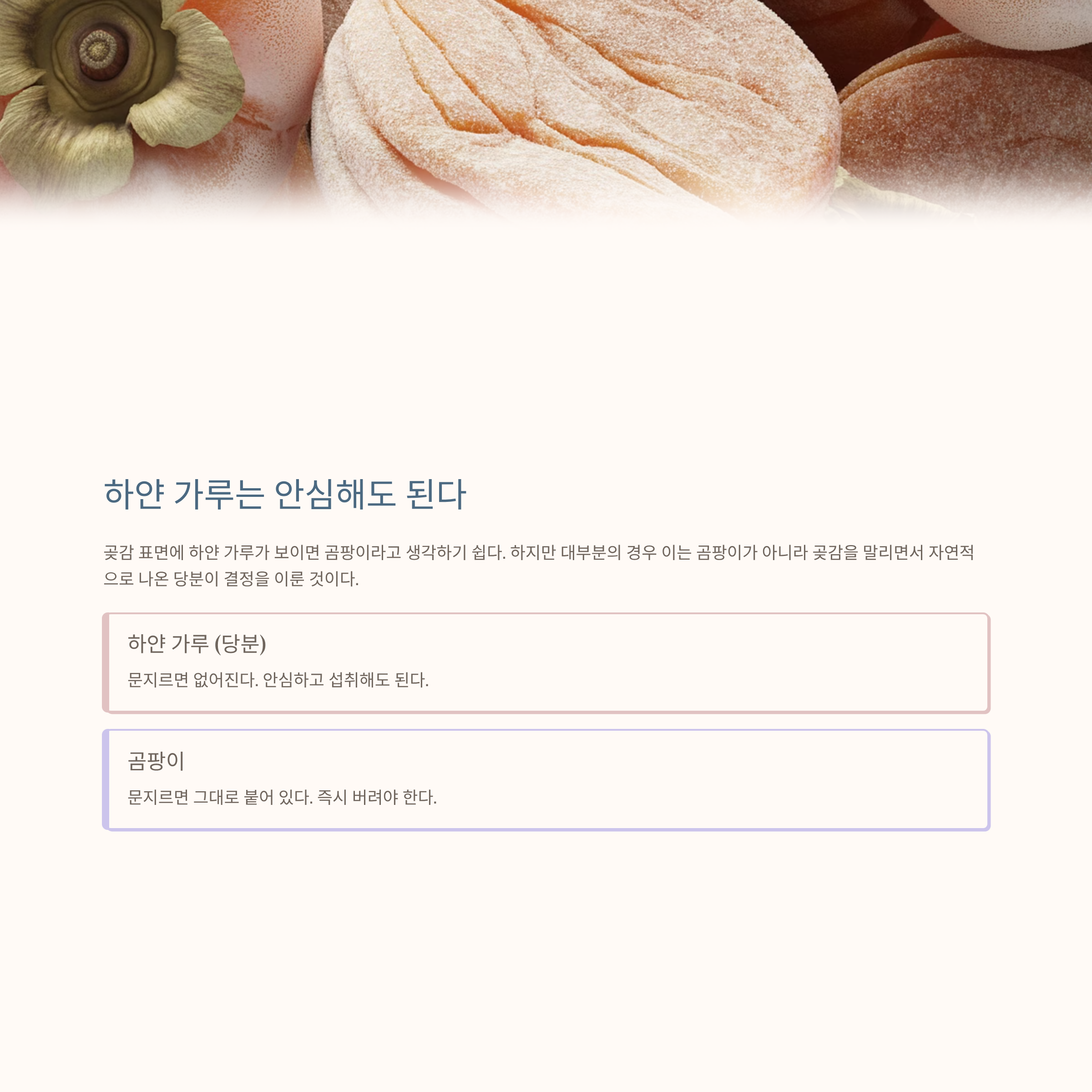 🍬 6. 곶감 위의 하얀 가루와 곰팡이 구별하기