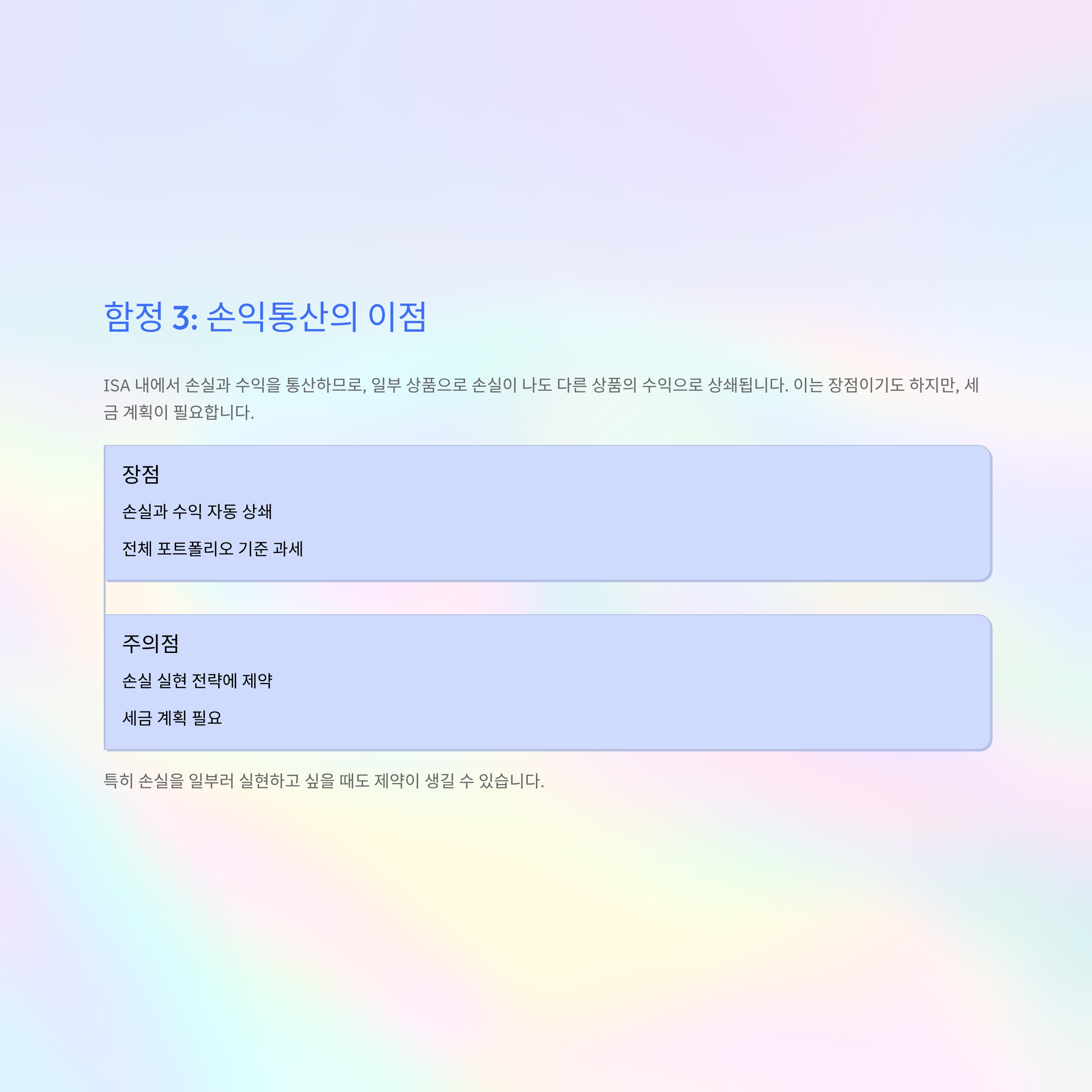 **함정 3: 손실 발생 시 손익통산의 이점을 못 누릴 수도 있다**
