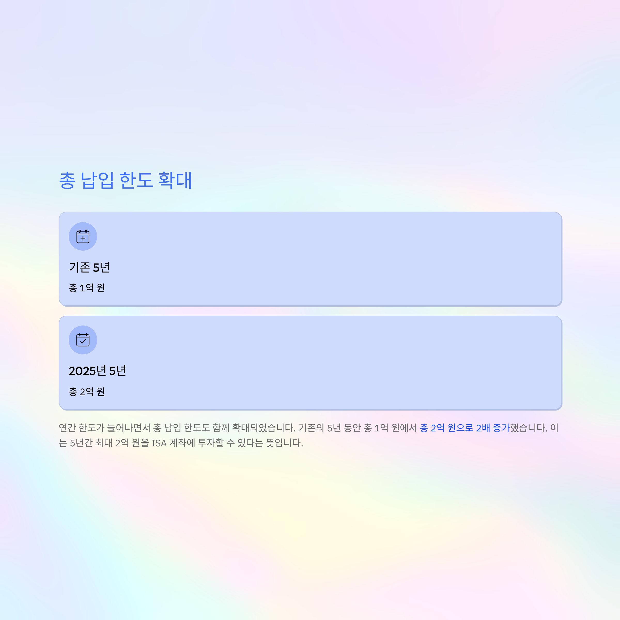**총 납입 한도: 1억 원 → 2억 원**