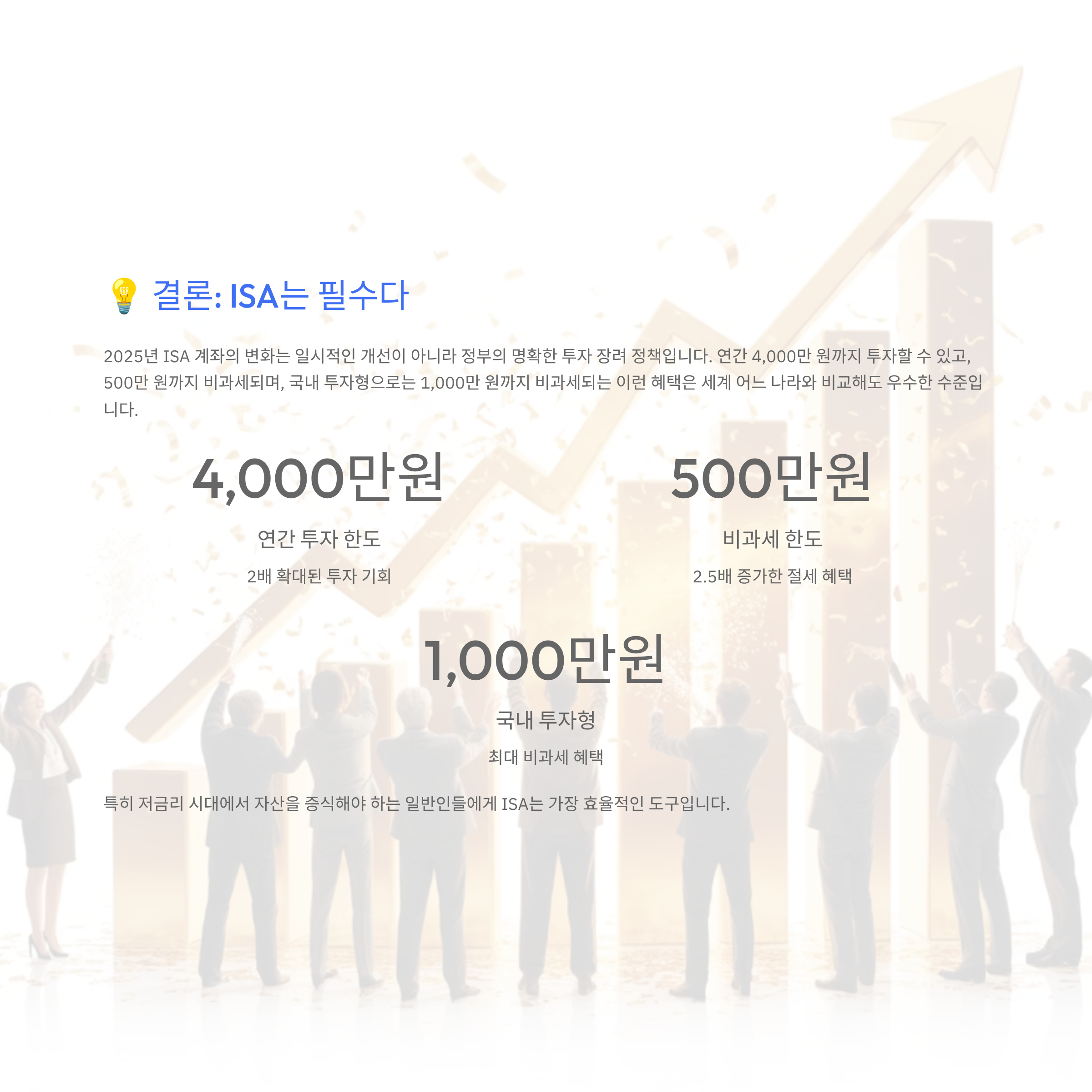 2025년 ISA 계좌의 변화는 일시적인 개선이 아니라 정부의 명확한 투자 장려 정책이다.