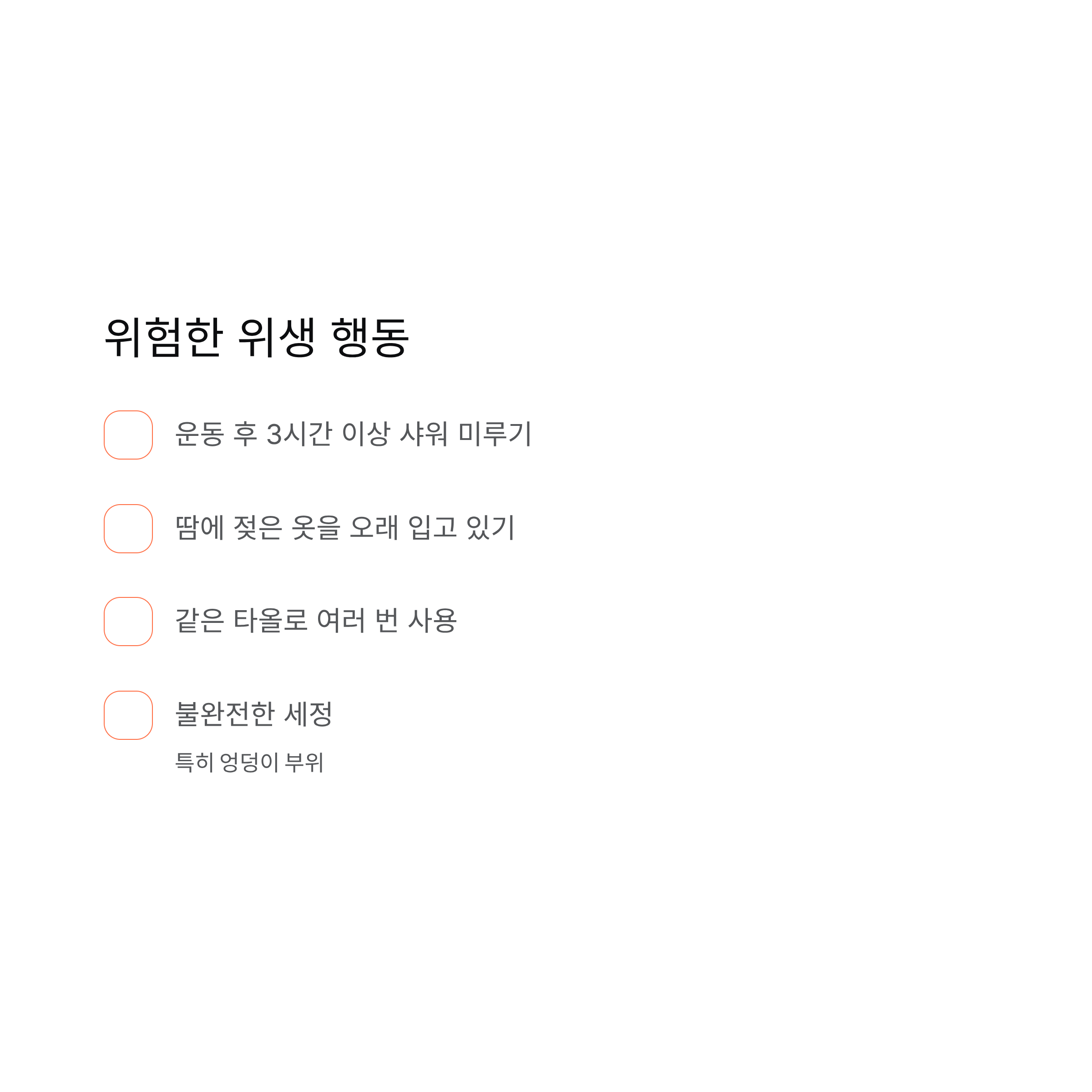 불결한 위생 상태(특히 운동 후 땀을 제대로 닦지 않을 때).