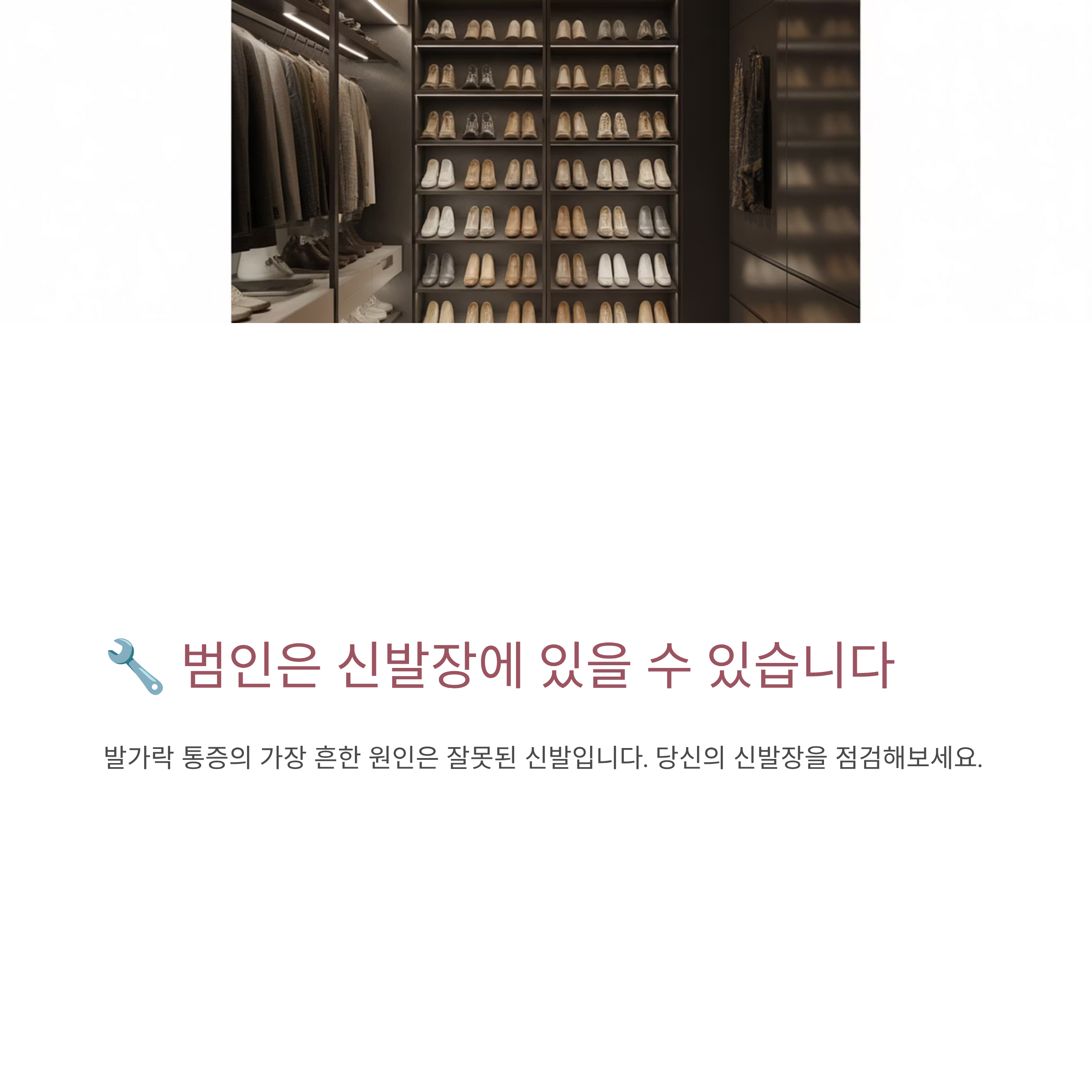 이 통증은 어쩌면 당신의 몸이 '발 건강에 신경 쓰라'는 신호일 수 있습니다. 이 기회를 통해 신발 습관을 점검하고, 발 건강을 더 튼튼하게 만드는 계기로 삼아보세요.