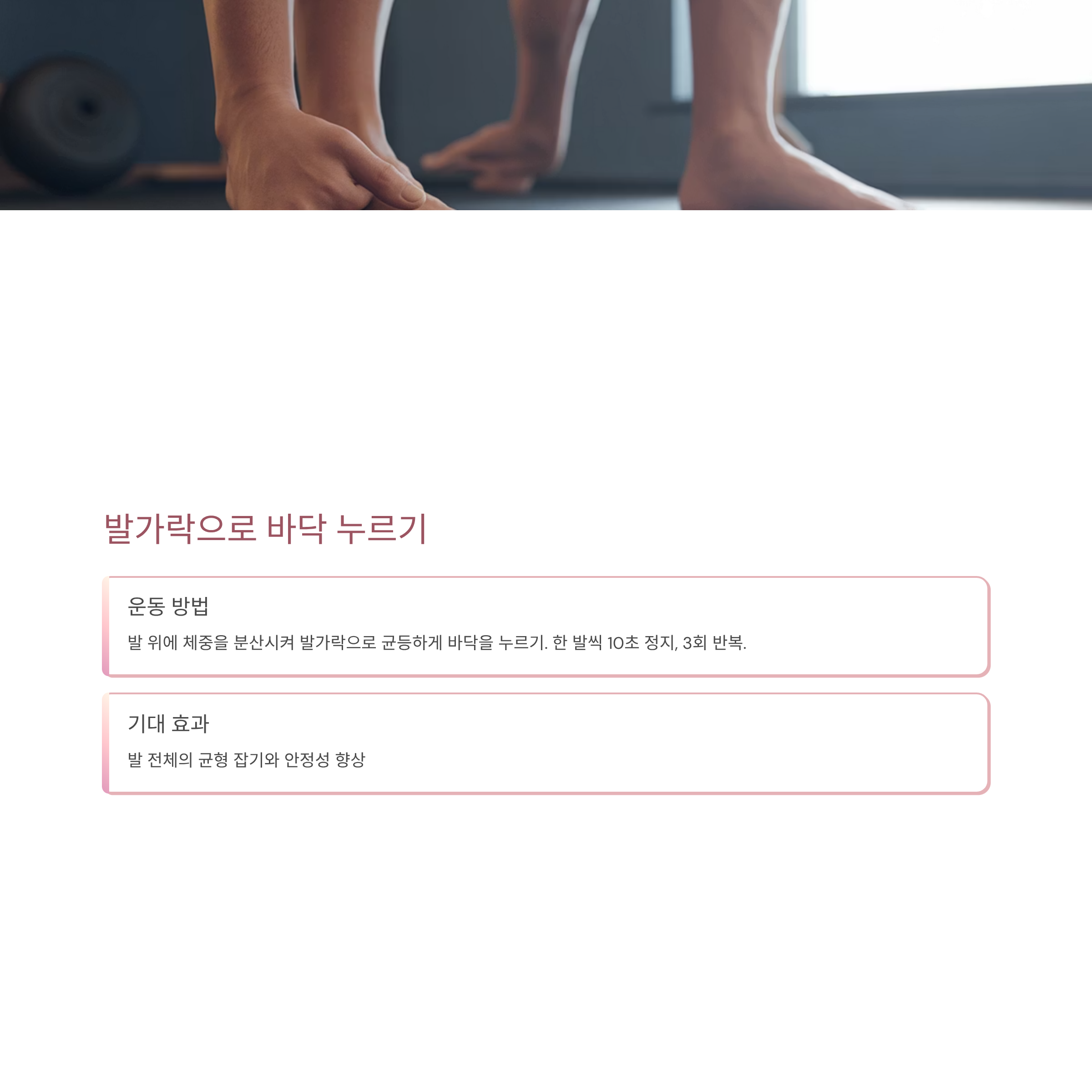 발 위에 체중을 분산시켜 발가락으로 균등하게 바닥을 누르기.