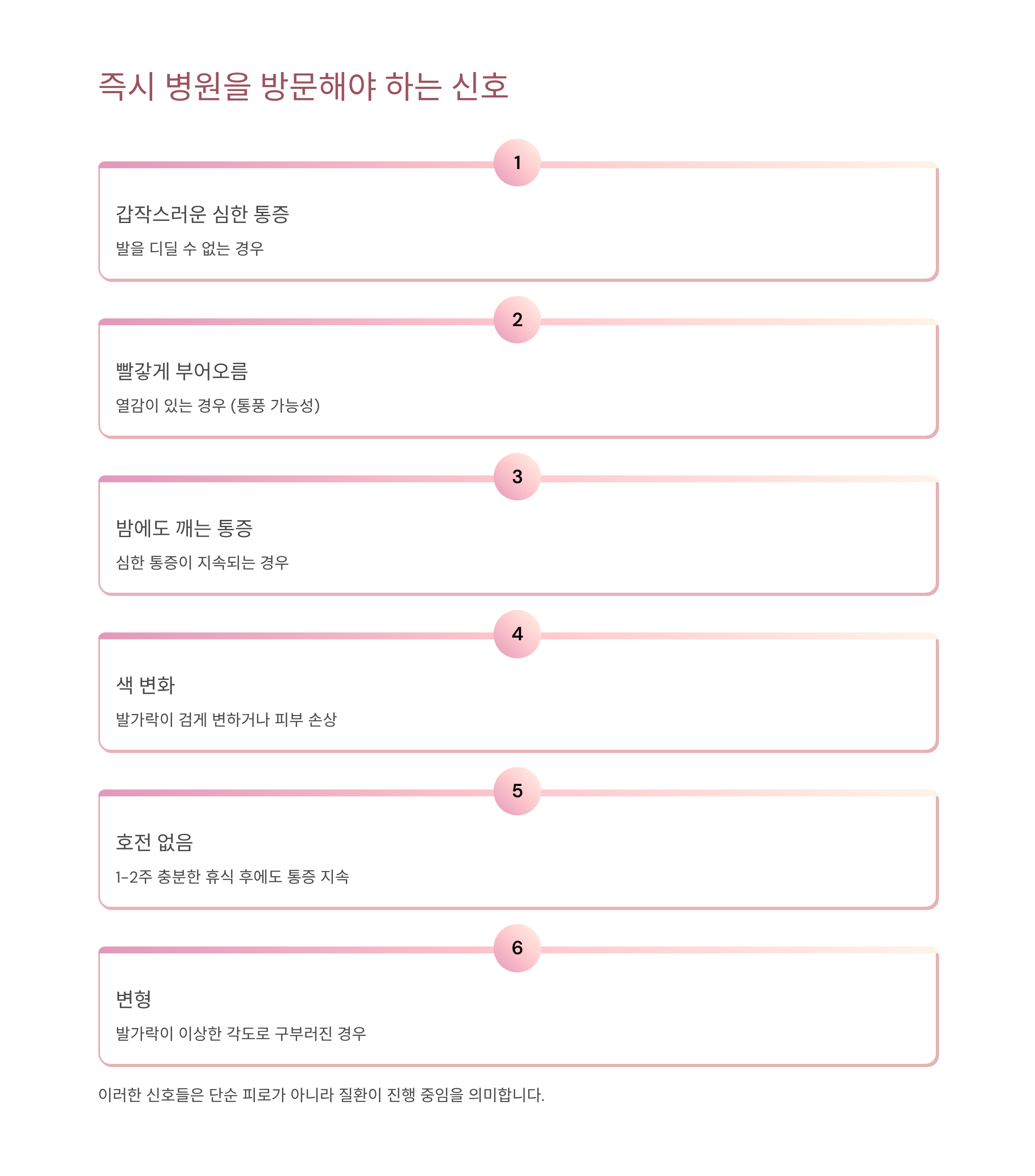 5) 1-2주 충분한 휴식 후에도 호전되지 않는 통증.