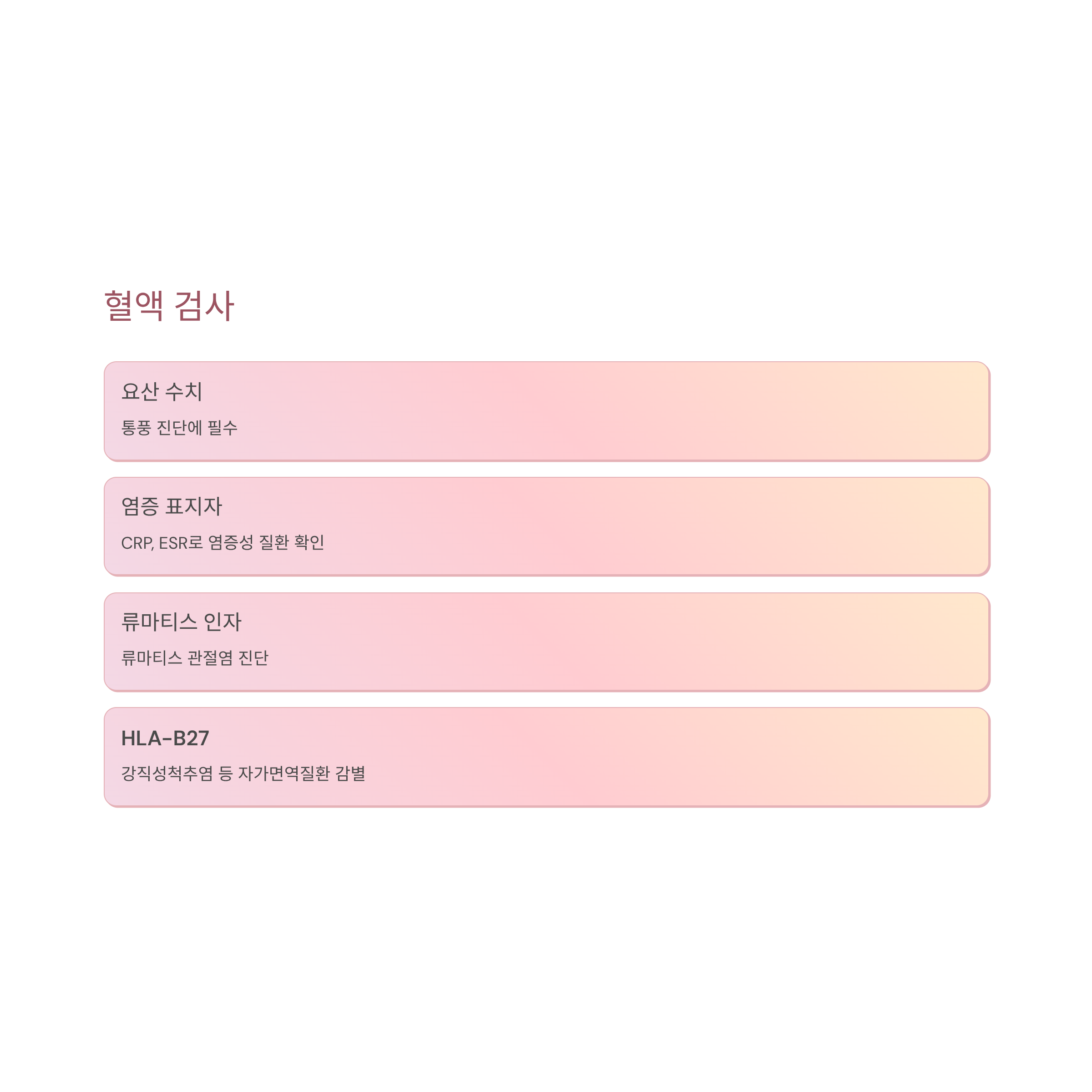 염증 표지자(CRP, ESR): 염증성 질환 확인.