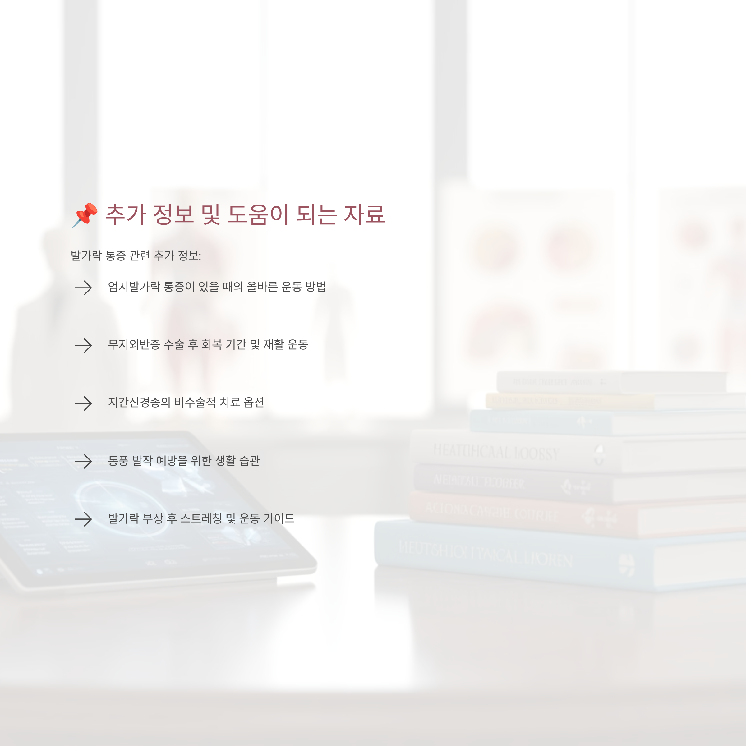 이 글에서 제시한 자가진단 체크리스트와 운동 방법을 통해 당신의 발가락 상태를 정확히 파악하세요. 만약 3-4개 이상의 증상이 있다면 병원을 방문하여 정확한 진단을 받으시길 바랍니다.
