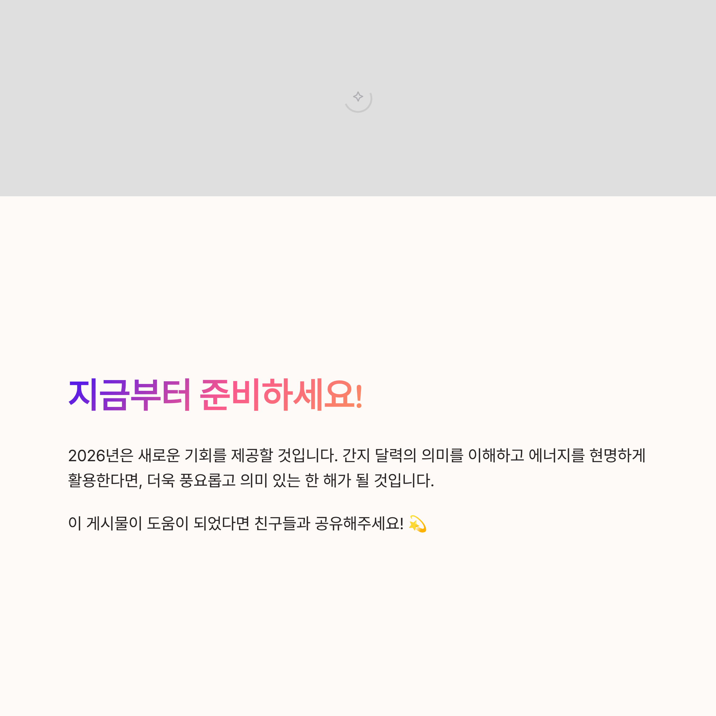 2026년은 당신에게 새로운 기회를 제공할 것입니다. 간지 달력의 의미를 이해하고, 그 에너지를 현명하게 활용한다면, 더욱 풍요롭고 의미 있는 한 해가 될 것입니다.