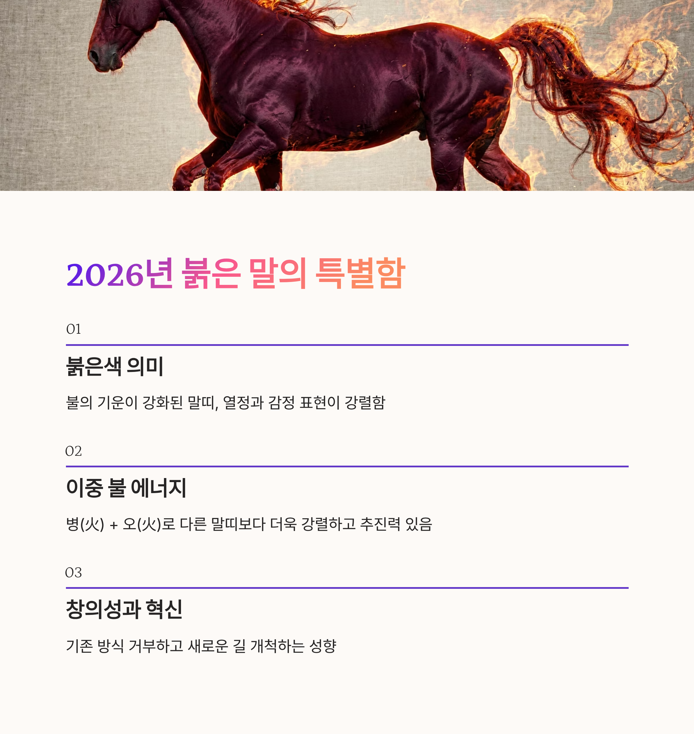 이 글에서는 단순히 "2026년은 말띠의 해"라는 기본 정보만 제공하지 않습니다.