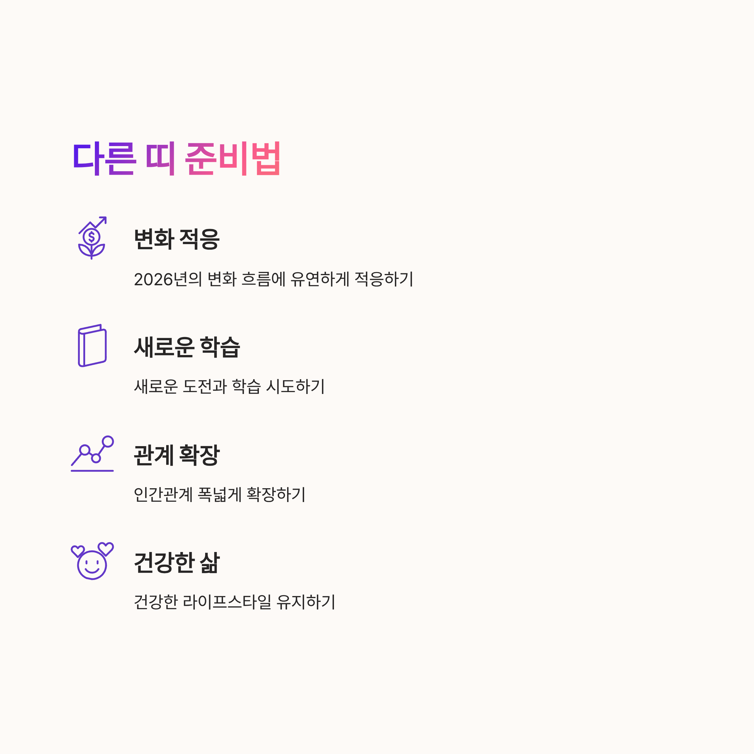 당신의 띠가 무엇이든, 2026년을 의미 있게 준비하는 데 꼭 필요한 정보를 모두 담았습니다.