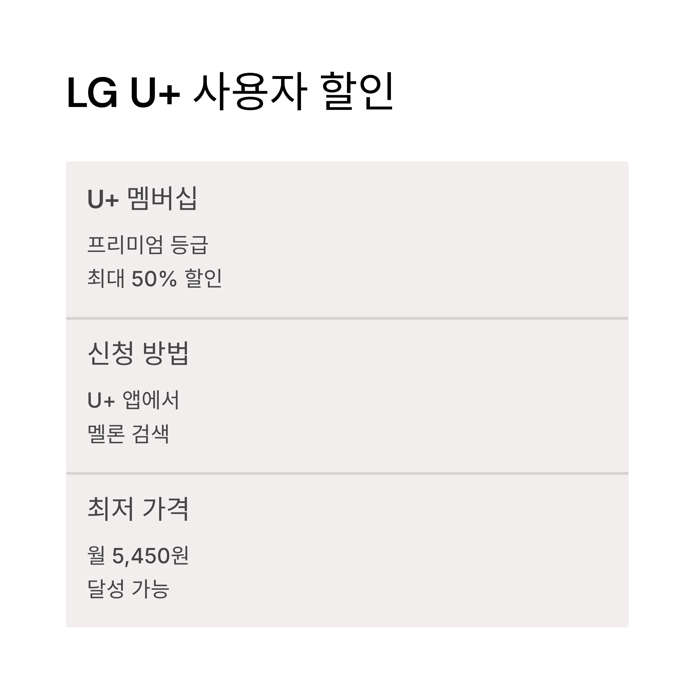- 혜택: U+ 멤버십 등급별 할인 (프리미엄: 최대 50%)