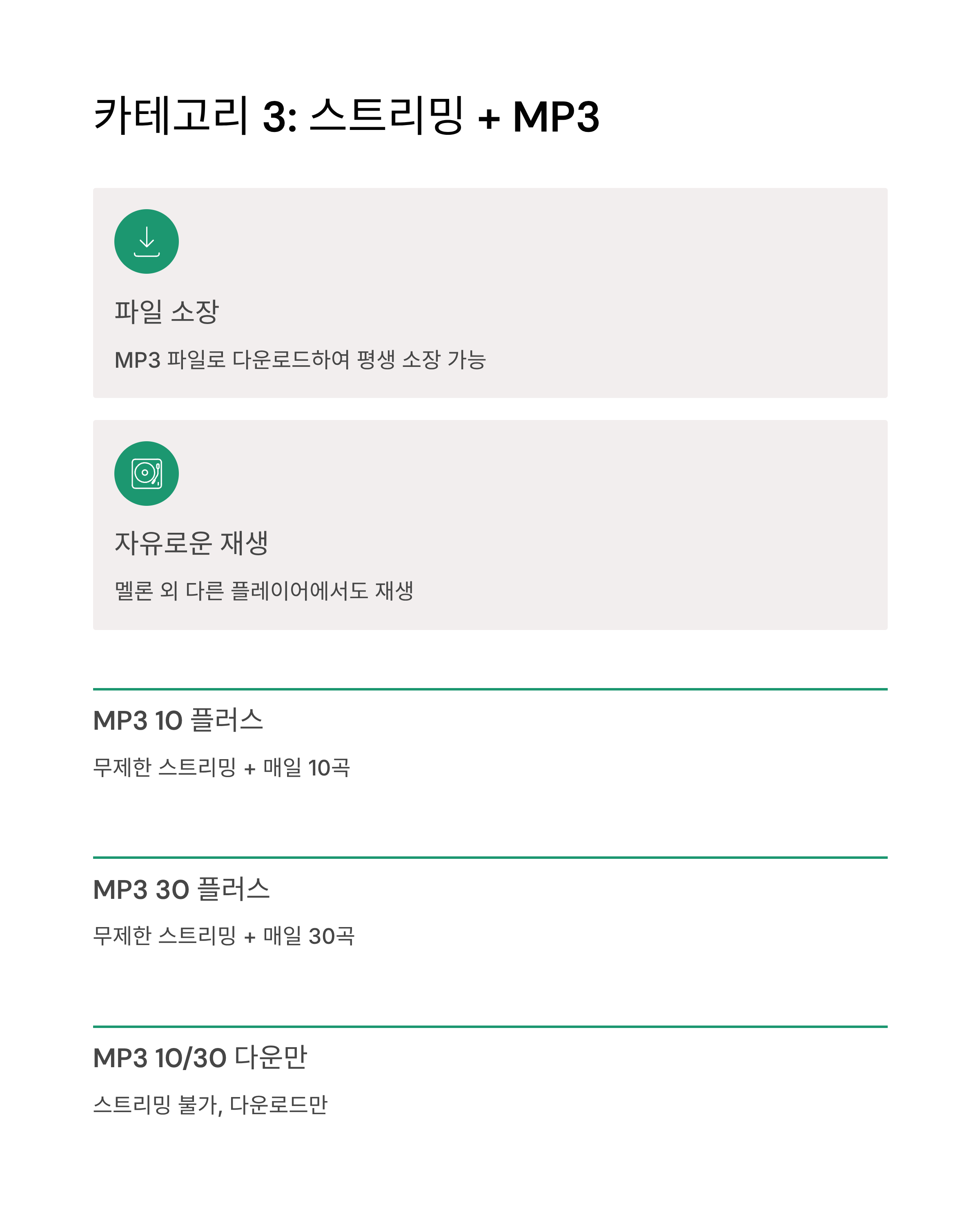 카테고리 3: 스트리밍 + MP3 다운로드 (파일 소장)
