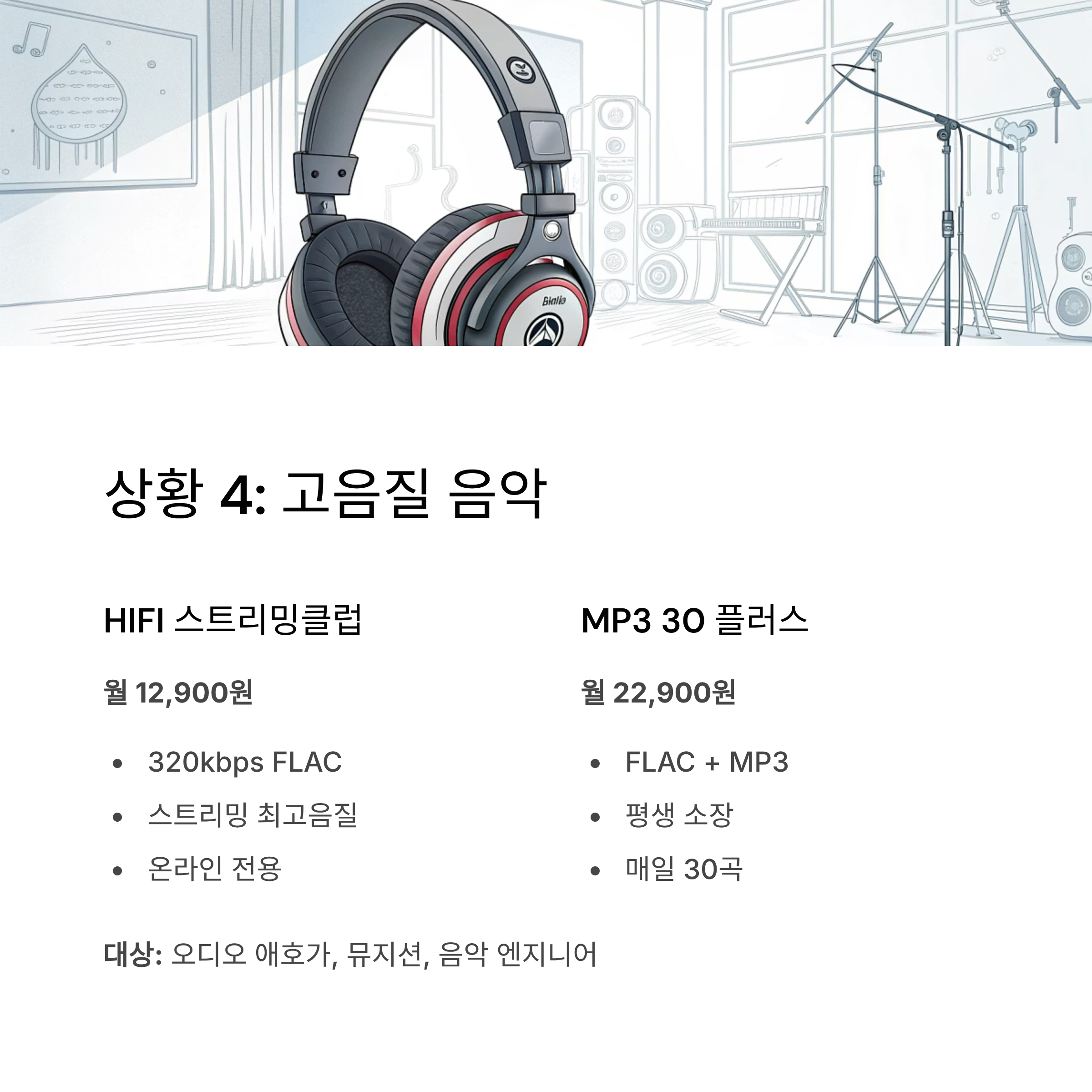 대상: 모바일에서만 음악을 듣는 직장인, 학생
