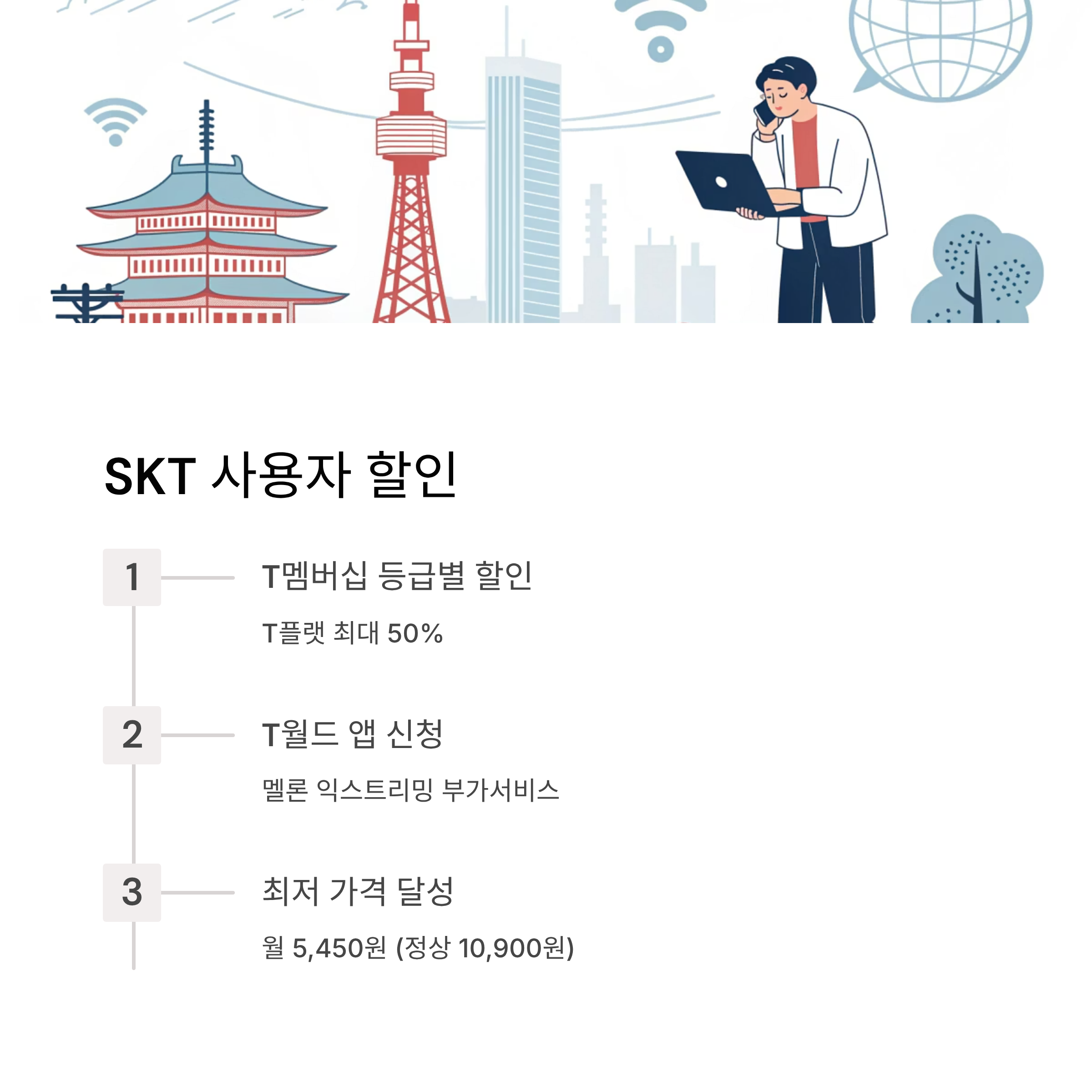 - 혜택: T멤버십 등급별 할인 (T플랫: 최대 50%)