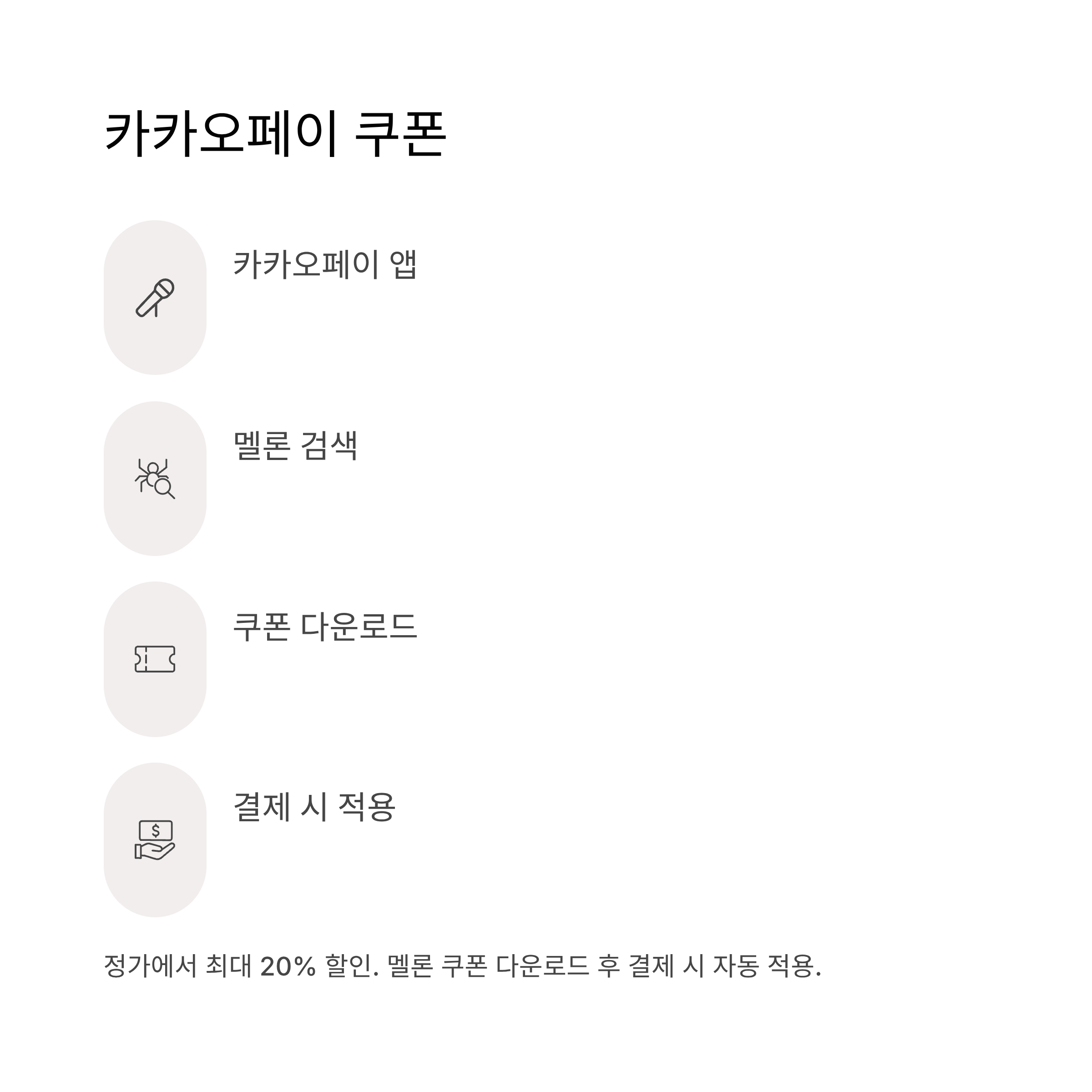 - 사용 방법: 카카오페이 앱 → "멜론" 검색 → 쿠폰 다운로드 → 멜론 결제 시 적용