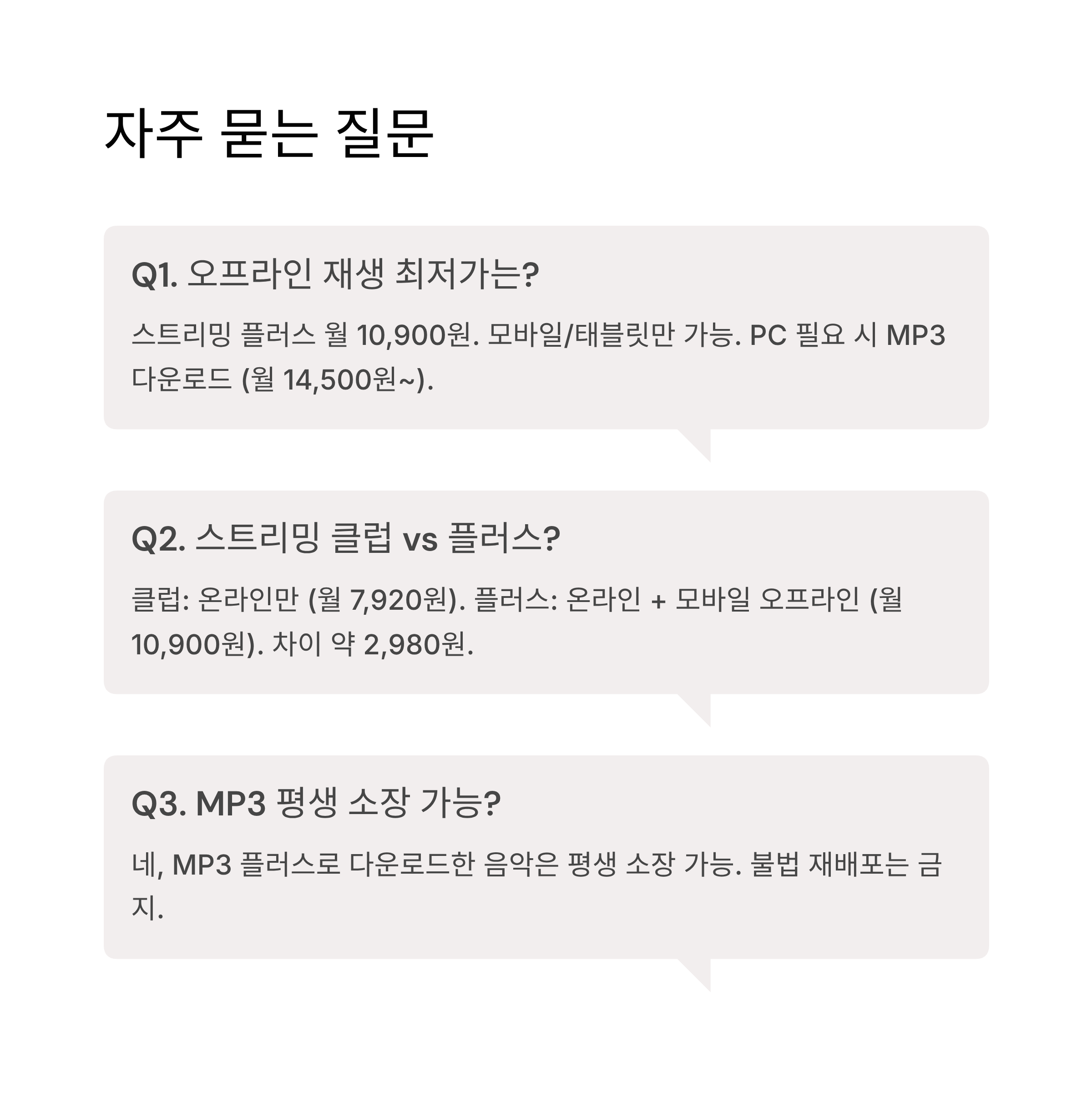 - 예 → 스트리밍 플러스 또는 MP3 (월 10,900원~)
