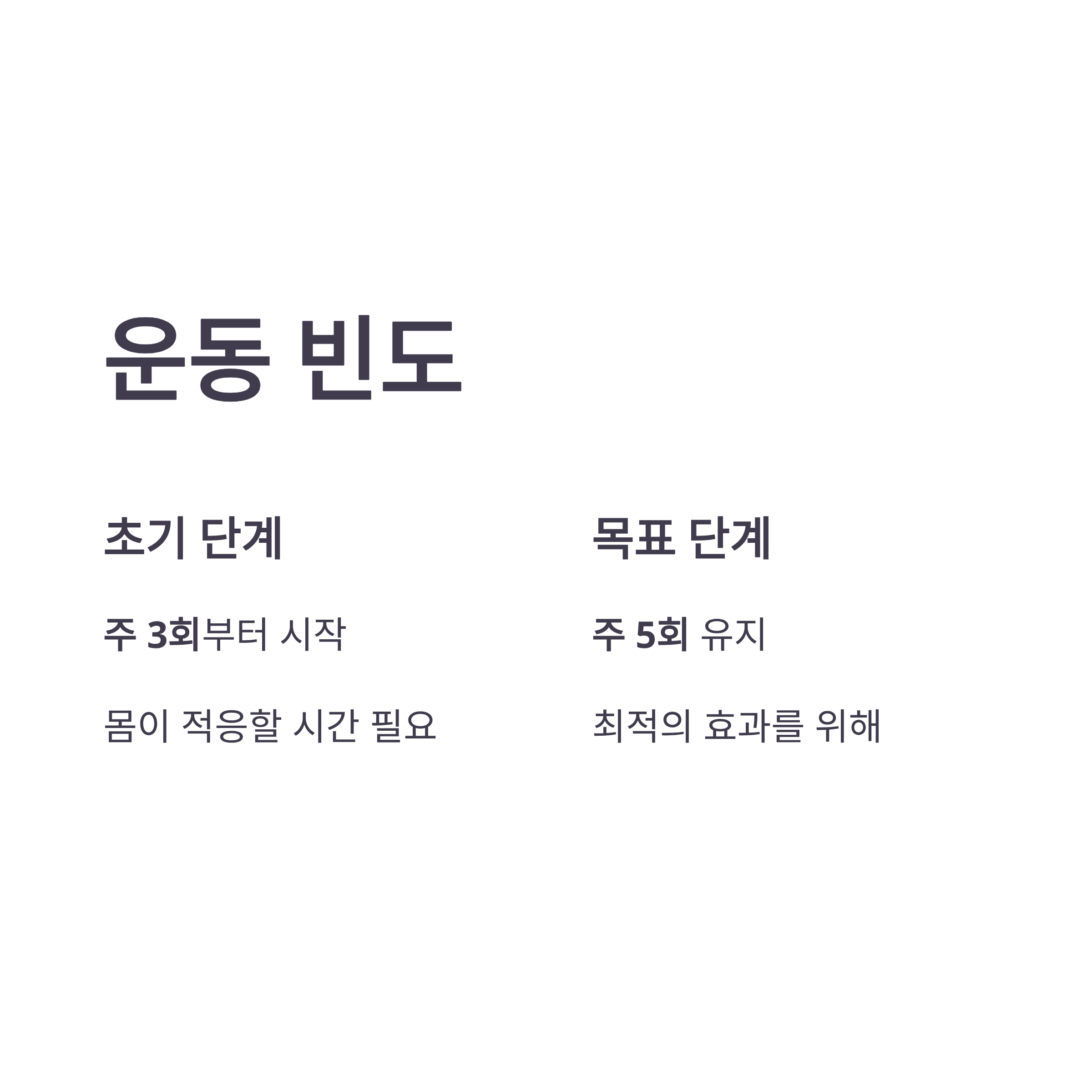 - 유산소 운동 주 3~5회 + 근력 운동 주 2회 병행