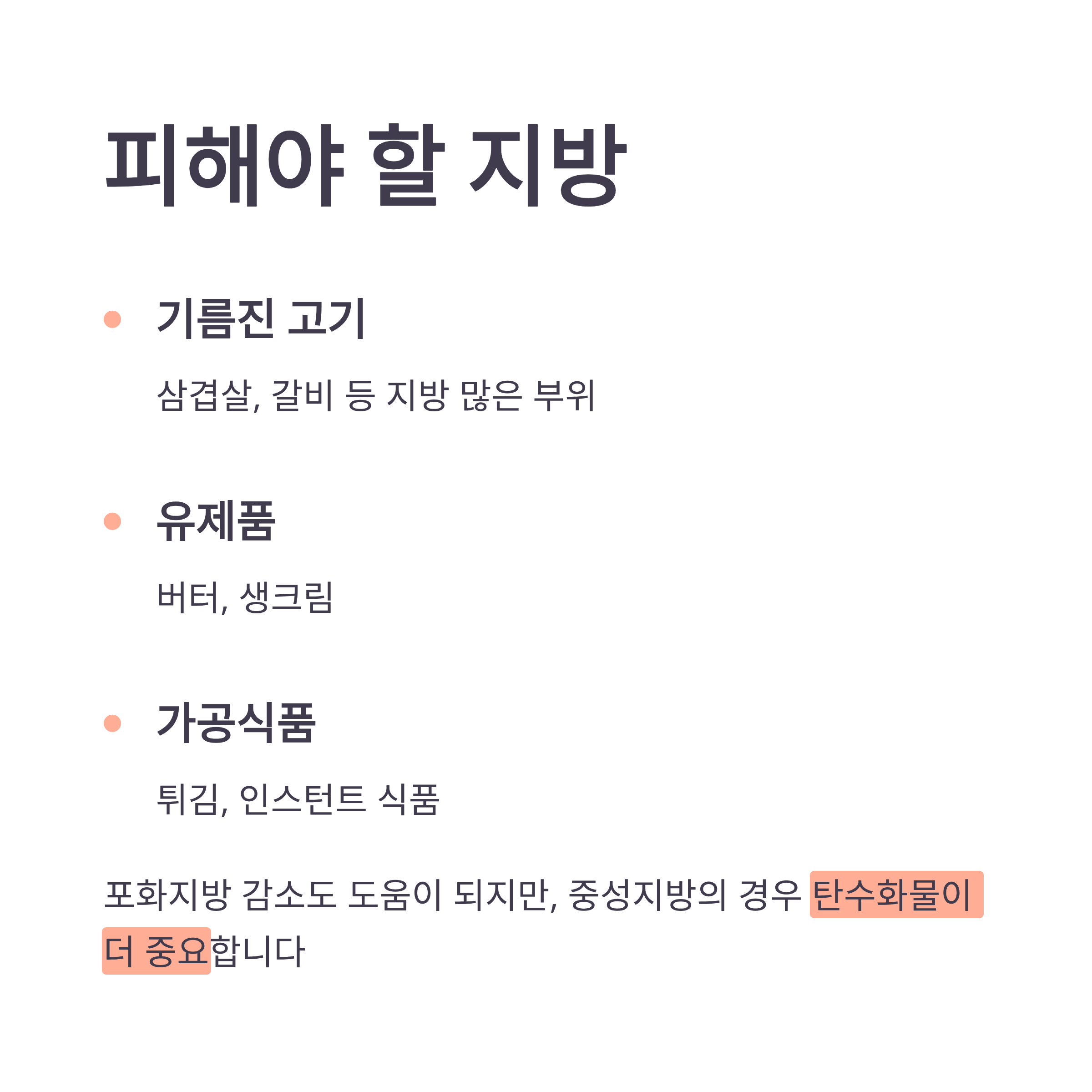 🍽️ 식단 조절: 탄수화물이 핵심 (포화지방 아님)
