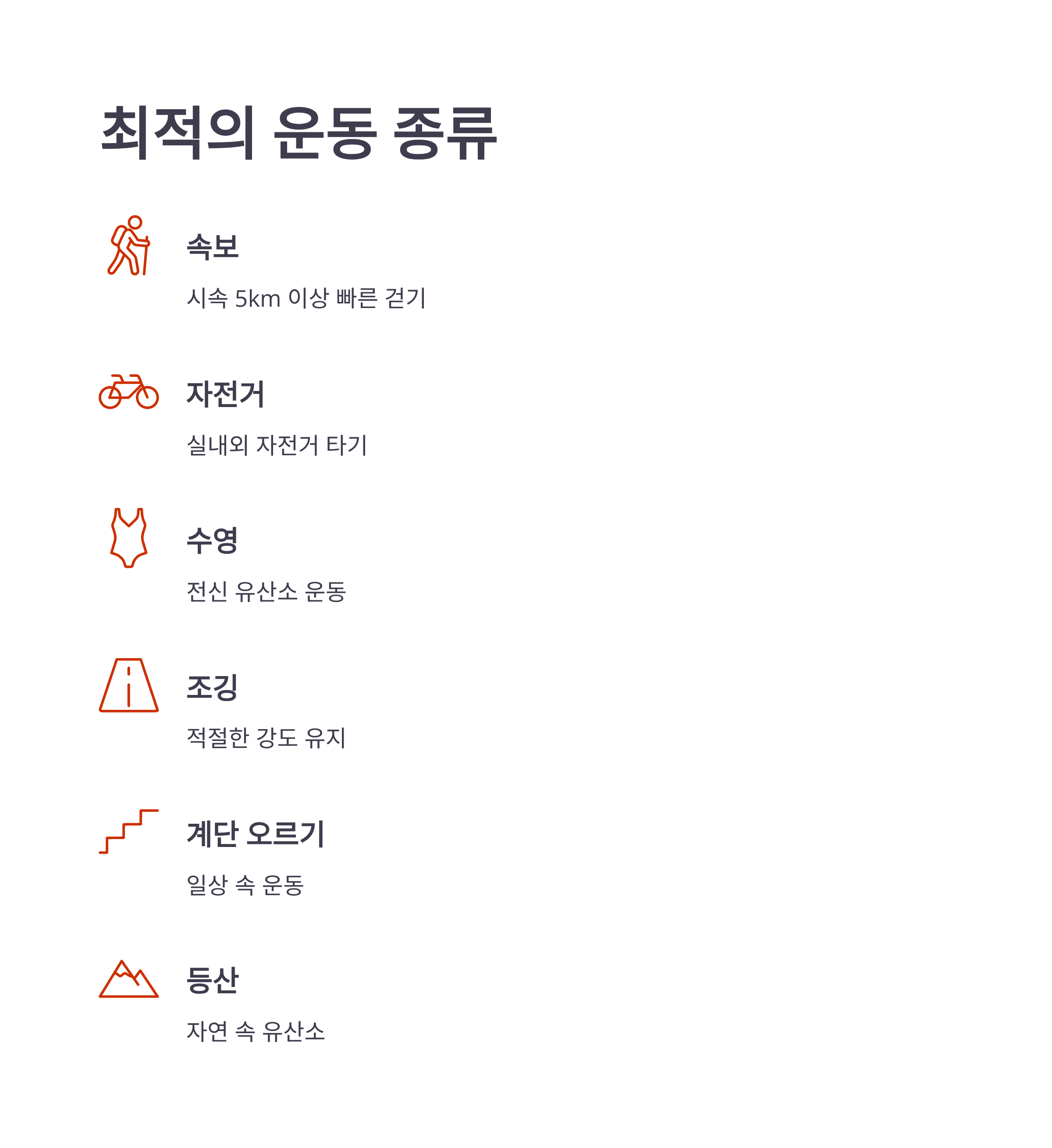운동 종류: 유산소 운동 (대근육 사용 필수)