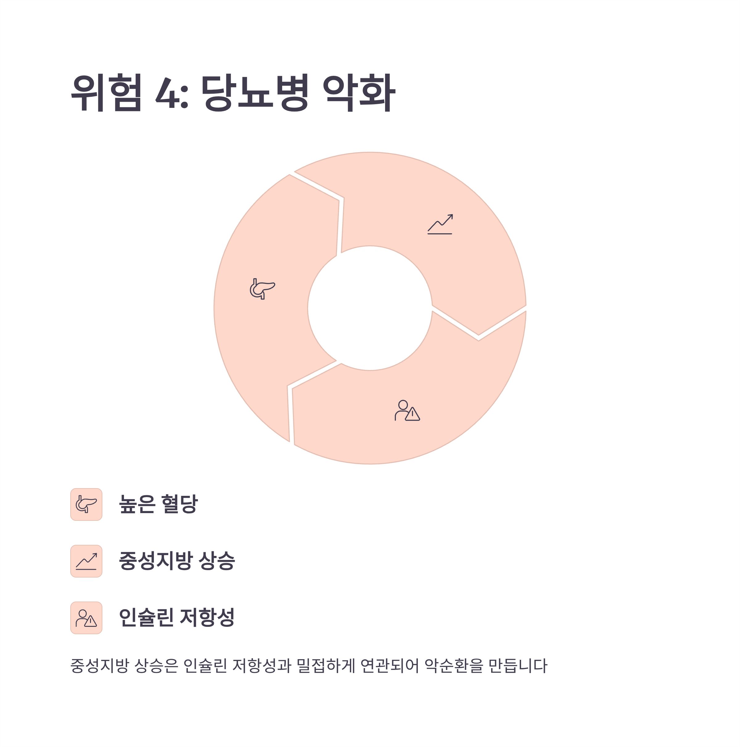 - 악순환: 높은 혈당 → 더 높은 중성지방 → 더 높은 혈당