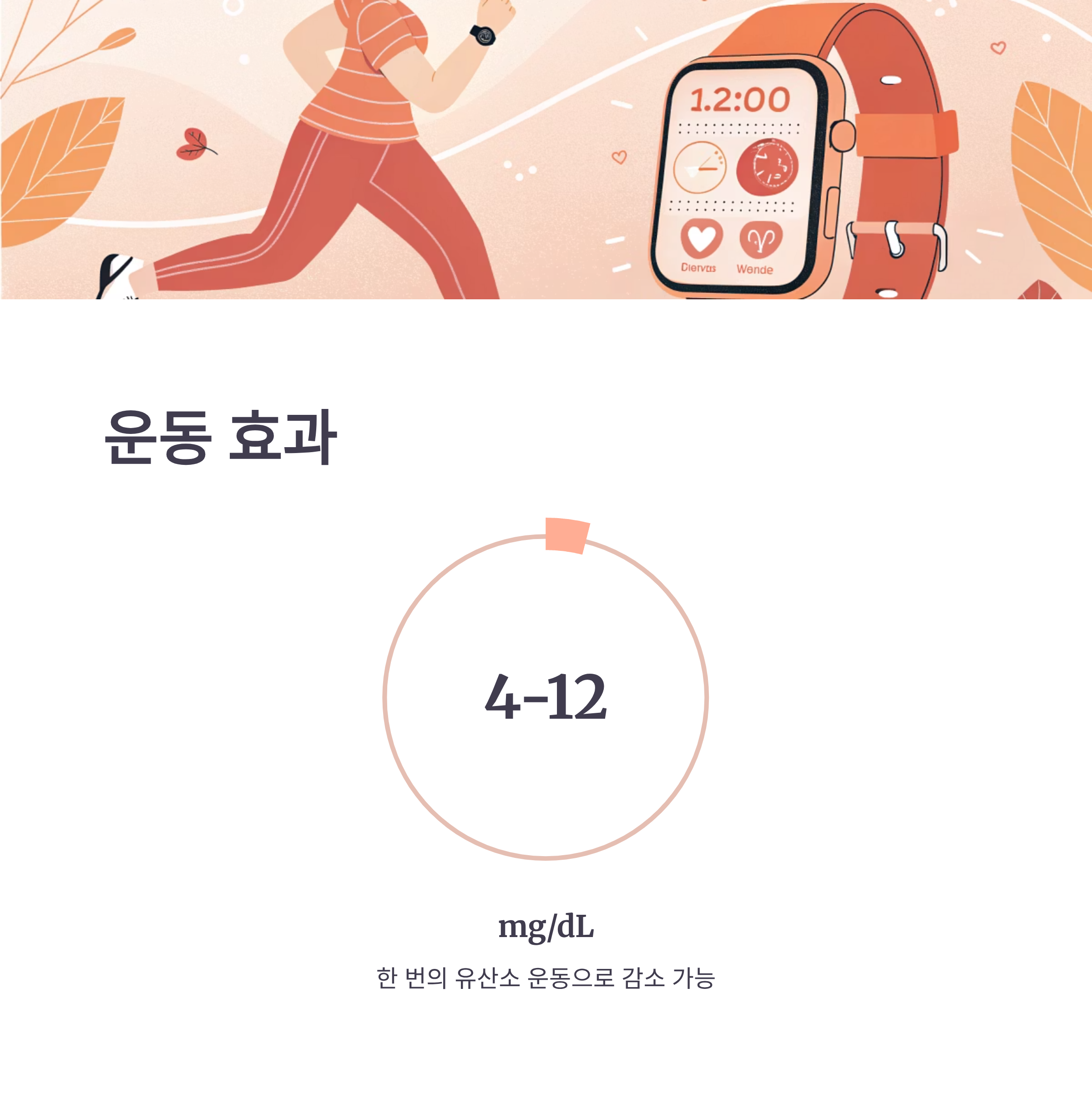 운동 효과: 한 번의 유산소 운동으로도 4~12 mg/dL 감소 가능