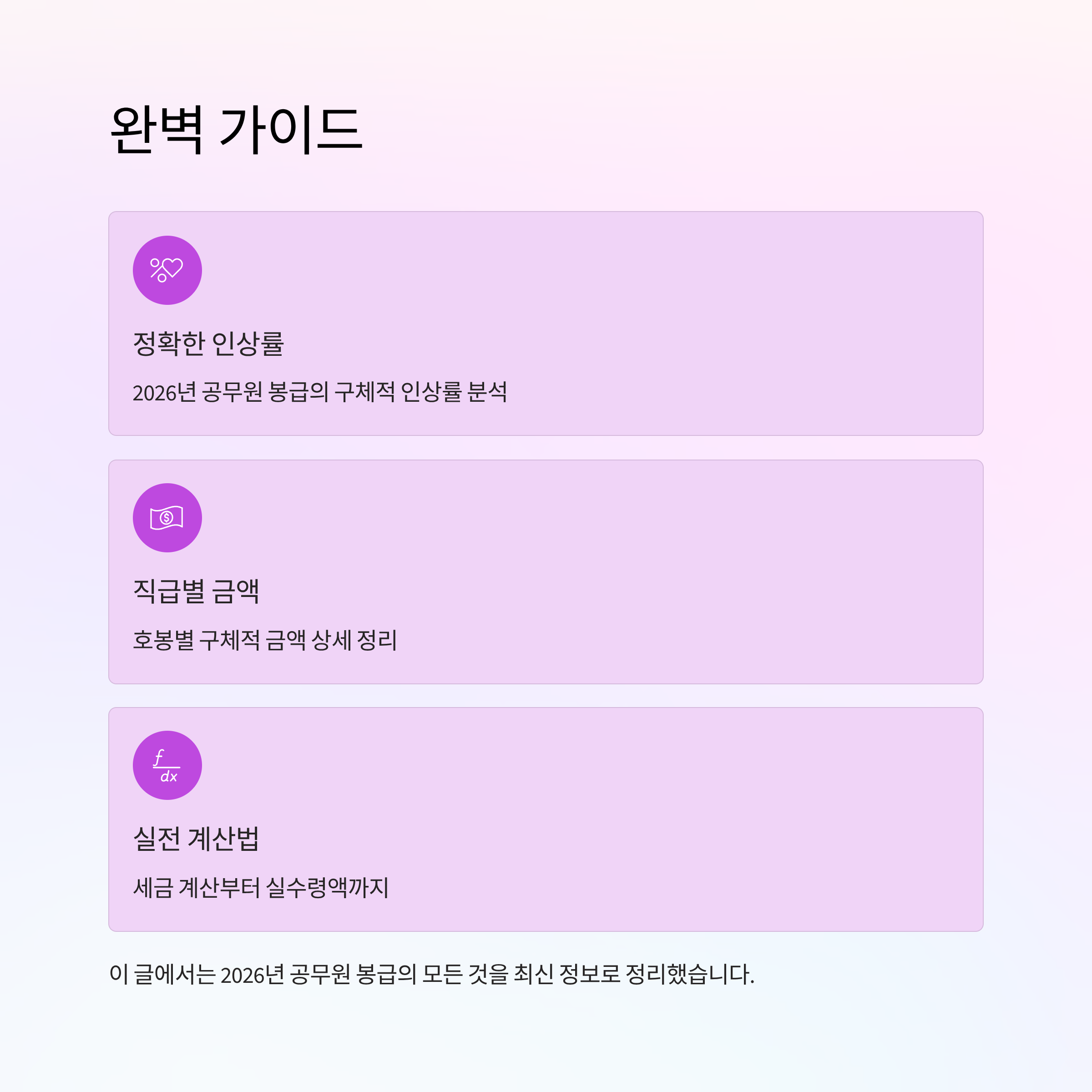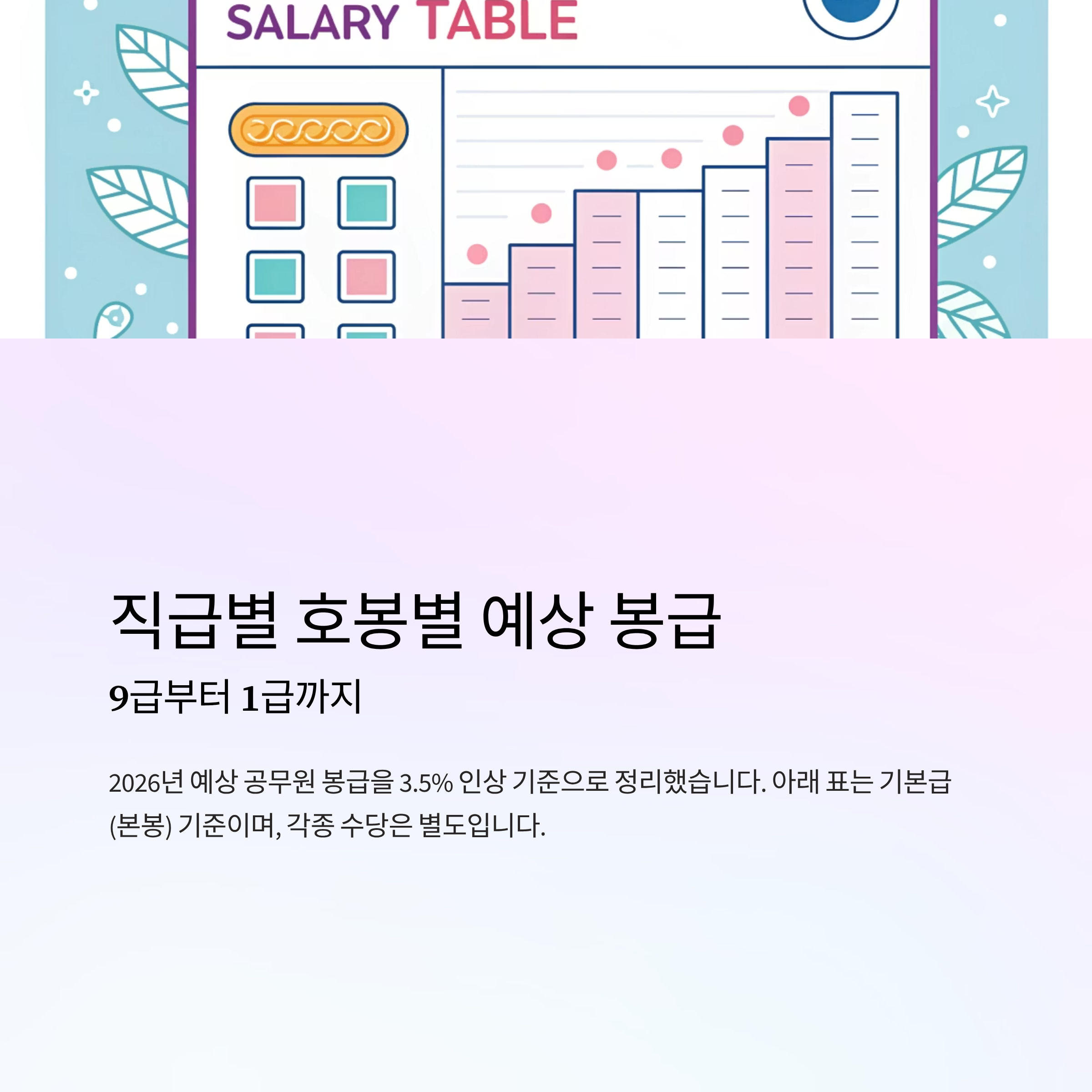 이 글에서는 2026년 공무원 봉급의 정확한 인상률, 직급별·호봉별 구체적 금액, 연금 영향, 실전 세금 계산법까지 최신 정보로 정리했습니다.