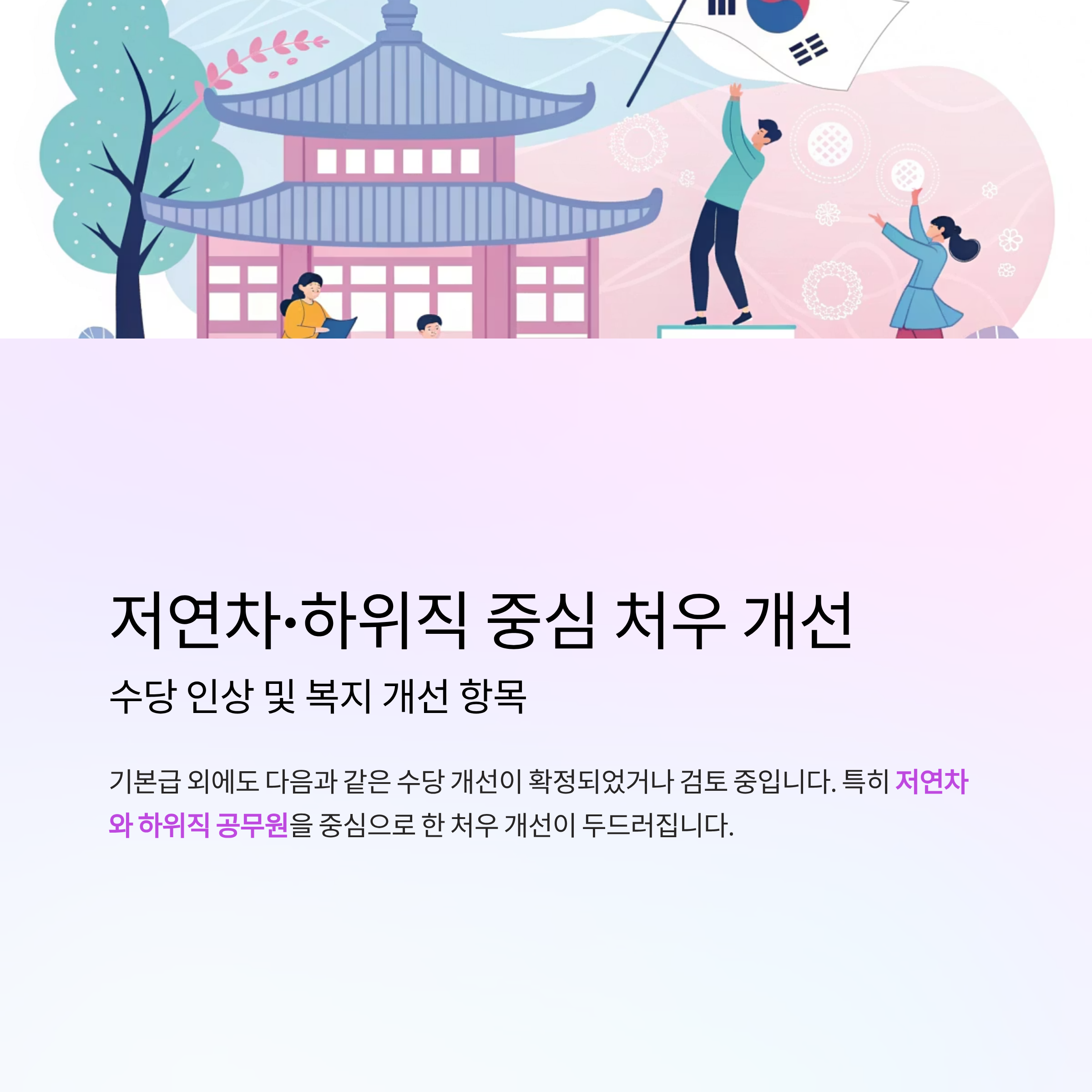 ✓ 저연차·하위직 중심 수당 인상 (직급보조비, 정액급식비)