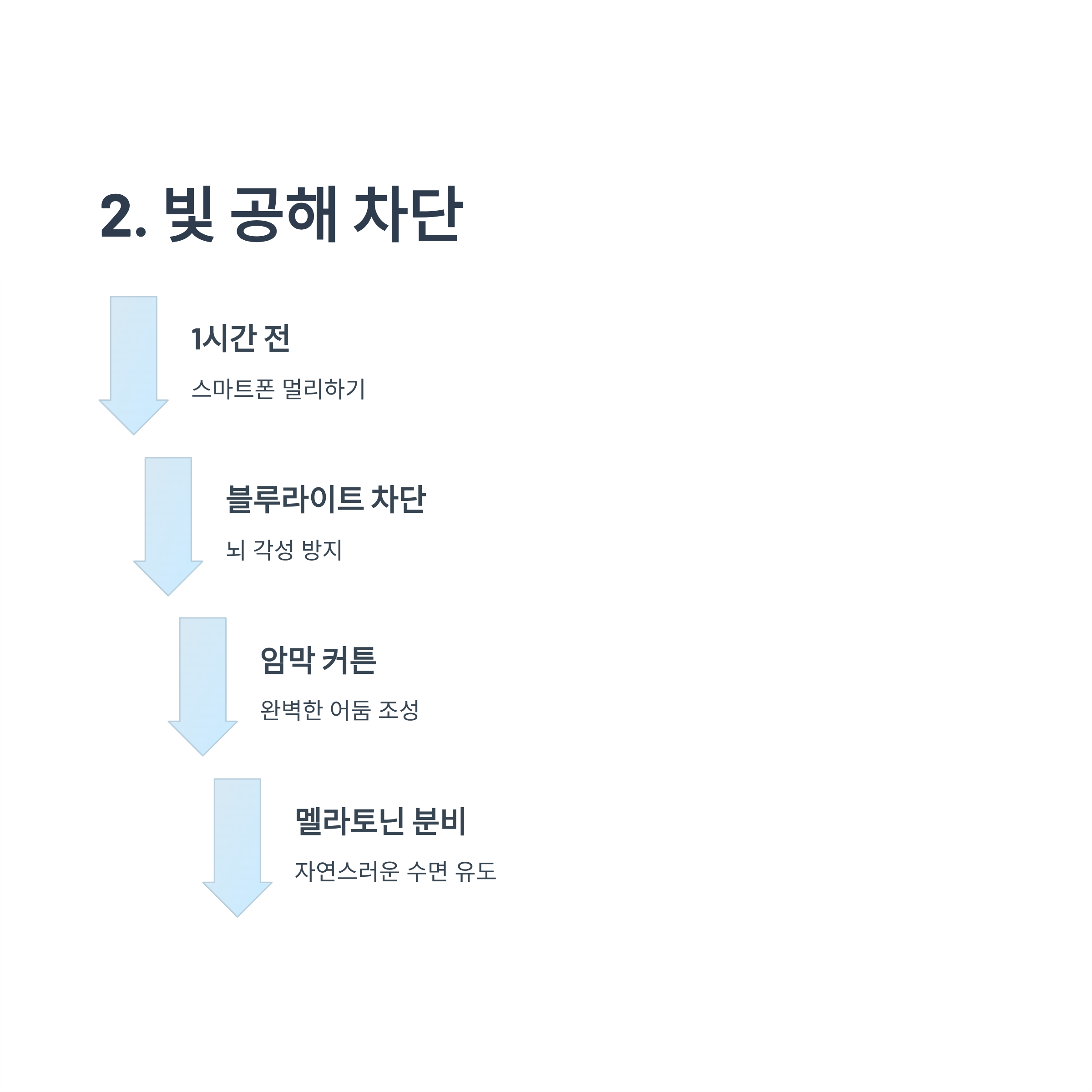 2. 빛 공해 차단: 잠들기 1시간 전부터는 스마트폰을 멀리하세요. 스마트폰의 블루라이트는 뇌를 각성시켜 "지금은 낮이야"라고 착각하게 만듭니다. 침실은 암막 커튼을 쳐서 완벽한 어둠을 만들어야 멜라토닌이 콸콸 쏟아집니다.