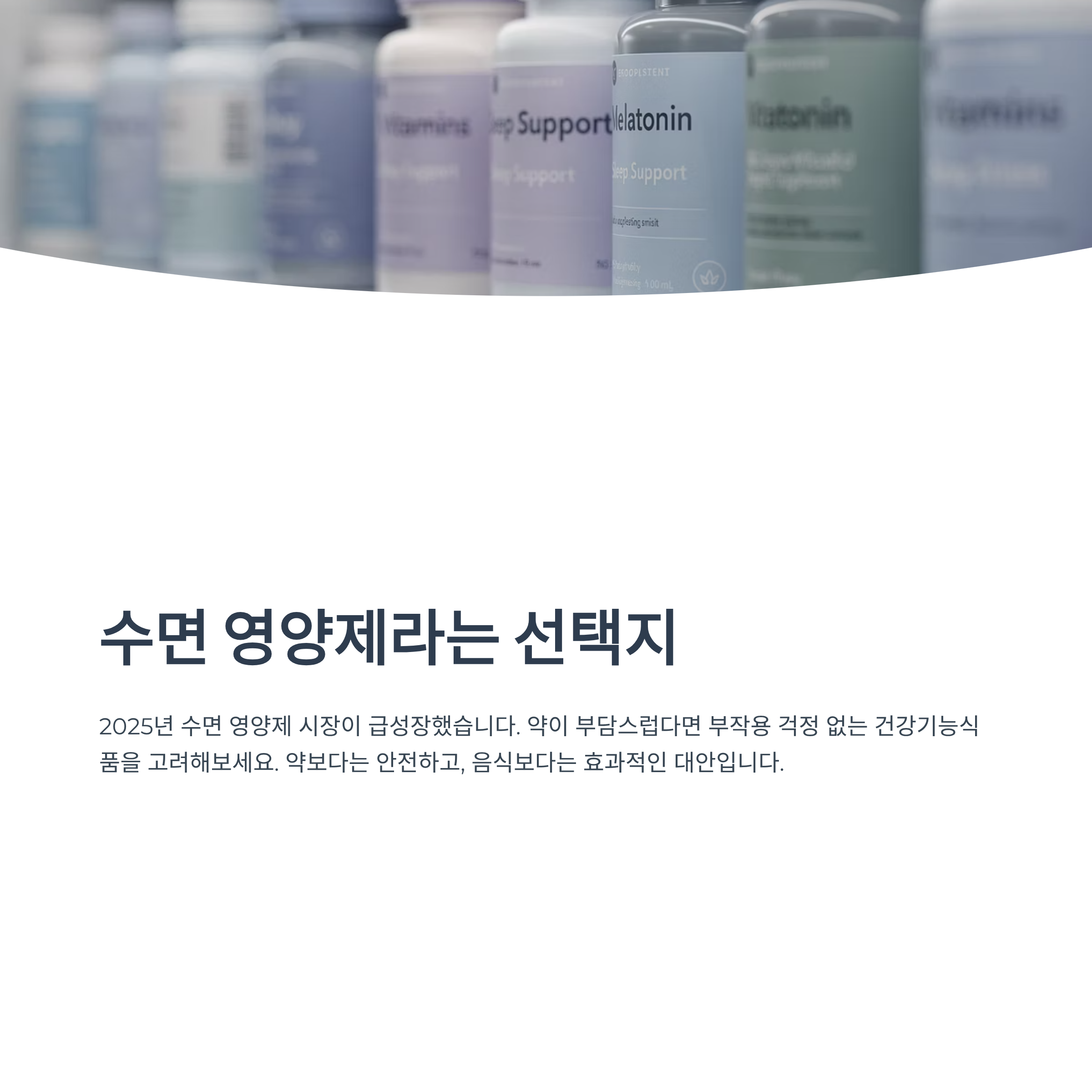 2025년에는 부작용 걱정 없이 섭취할 수 있는 수면 영양제 시장이 급성장했습니다. 약국에서도 의약품 매대 옆 건강기능식품 코너에서 쉽게 찾을 수 있습니다. 약보다는 안전하고, 음식보다는 효과적인 대안입니다.