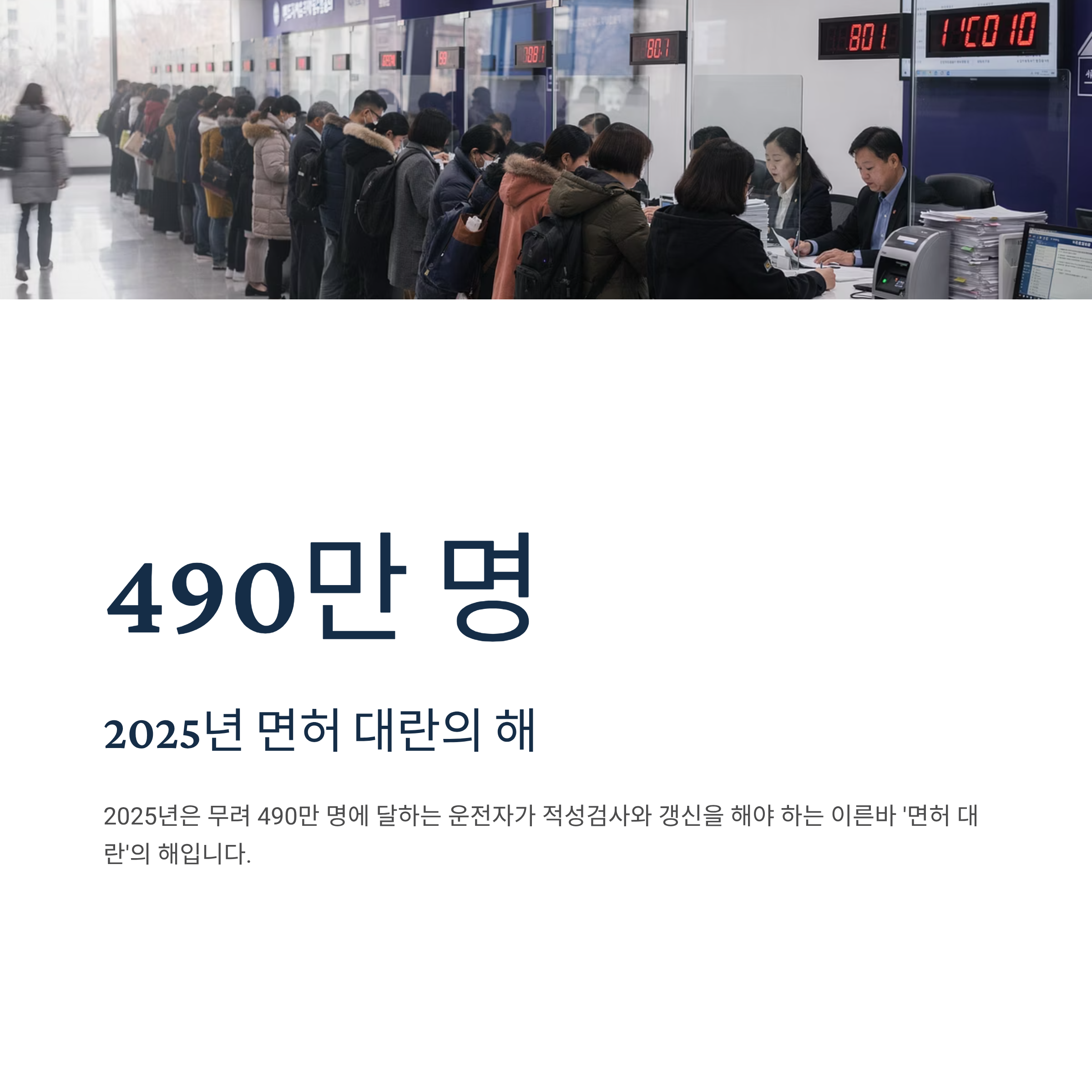 그런데 2025년은 무려 490만 명에 달하는 운전자가 적성검사와 갱신을 해야 하는 이른바 '면허 대란'의 해입니다.