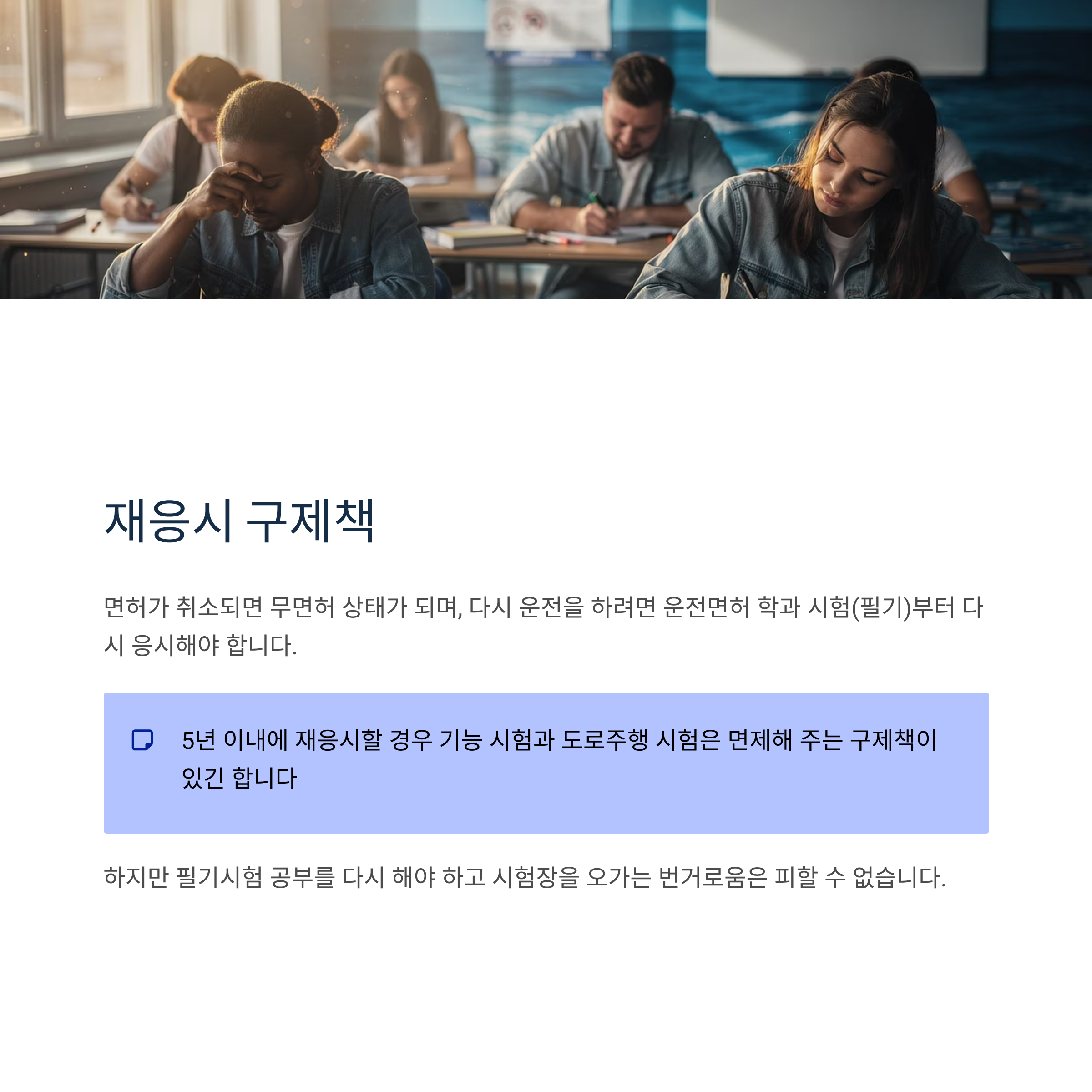 하지만 필기시험 공부를 다시 해야 하고 시험장을 오가는 번거로움은 피할 수 없습니다.)