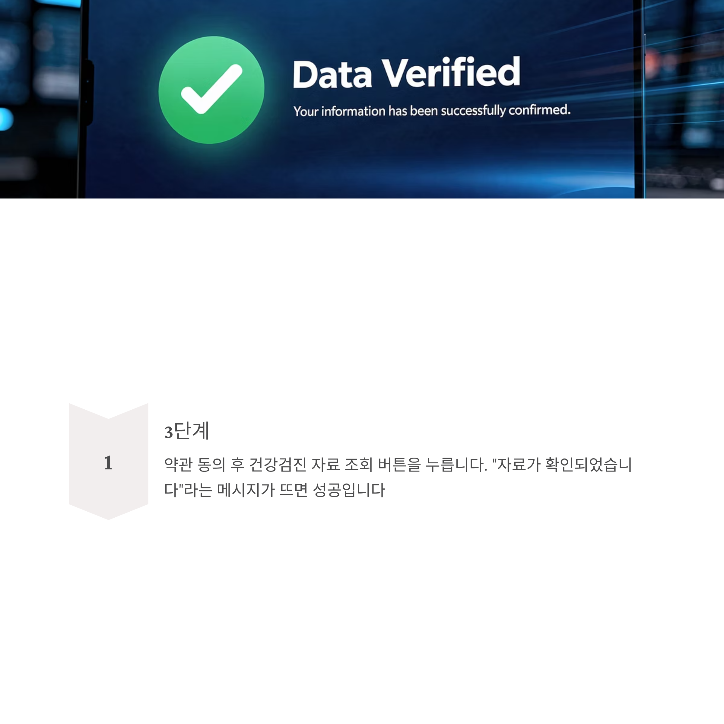 3. 약관 동의 후 [건강검진 자료 조회] 버튼을 누릅니다. "자료가 확인되었습니다"라는 메시지가 뜨면 공단 데이터를 성공적으로 불러온 것입니다. (만약 부적격이나 자료 없음이 뜨면 온라인 신청이 불가능하므로 방문해야 합니다.)