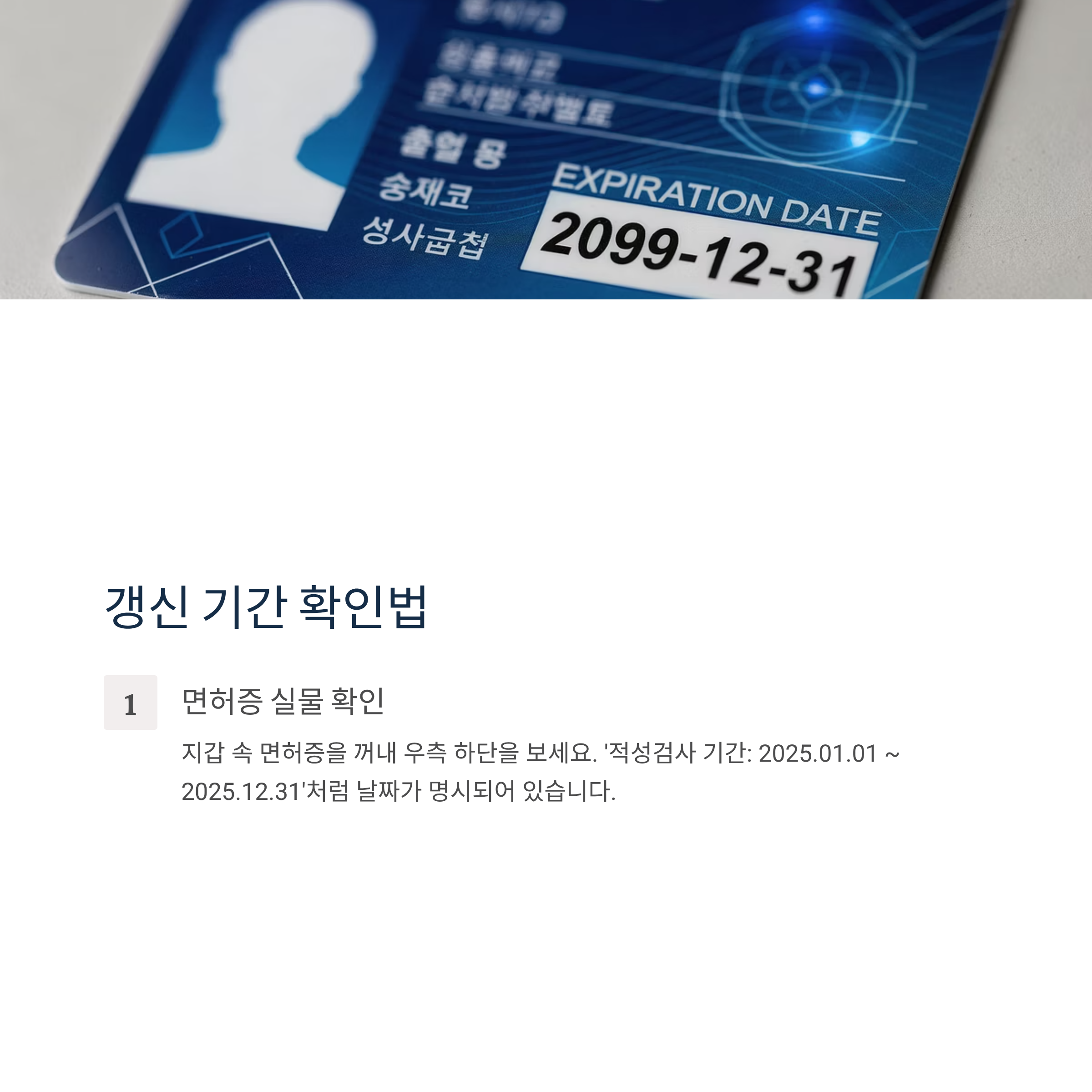 - 면허증 실물 확인: 지갑 속 면허증을 꺼내 우측 하단을 보세요. '적성검사 기간: 2025.01.01 ~ 2025.12.31'처럼 날짜가 명시되어 있습니다.